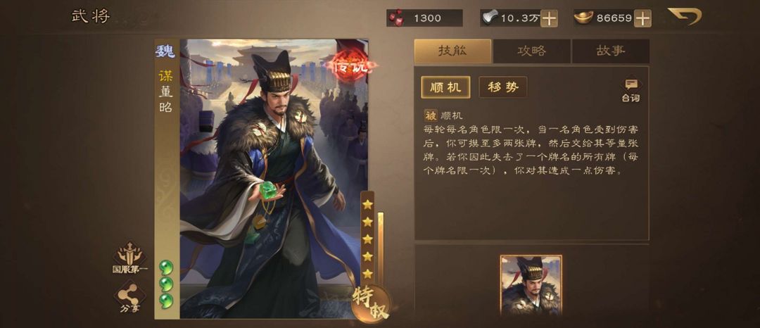 装备描述:⚠️⚠️⚠️重要提醒:为了您和后续玩家的游戏体验,请务必不要逃跑、挂机,导致信誉分扣除的将永久拉黑!!时间到后可继续游戏,直到有人顶号。登号后若正在游戏,请务必把游戏进行完,不要强行退出,导致信誉分扣除!!! ⭐⭐⭐叁卡充足!欢乐豆充足!只可使用叁卡、欢乐豆!!号主会每天登号补货,元宝、玉玺、祈福灯、夺宝券、所有将印等资源——禁止使用! 本人自用号,会长期补强将!!寻长期租客!喜欢的敬请收藏。