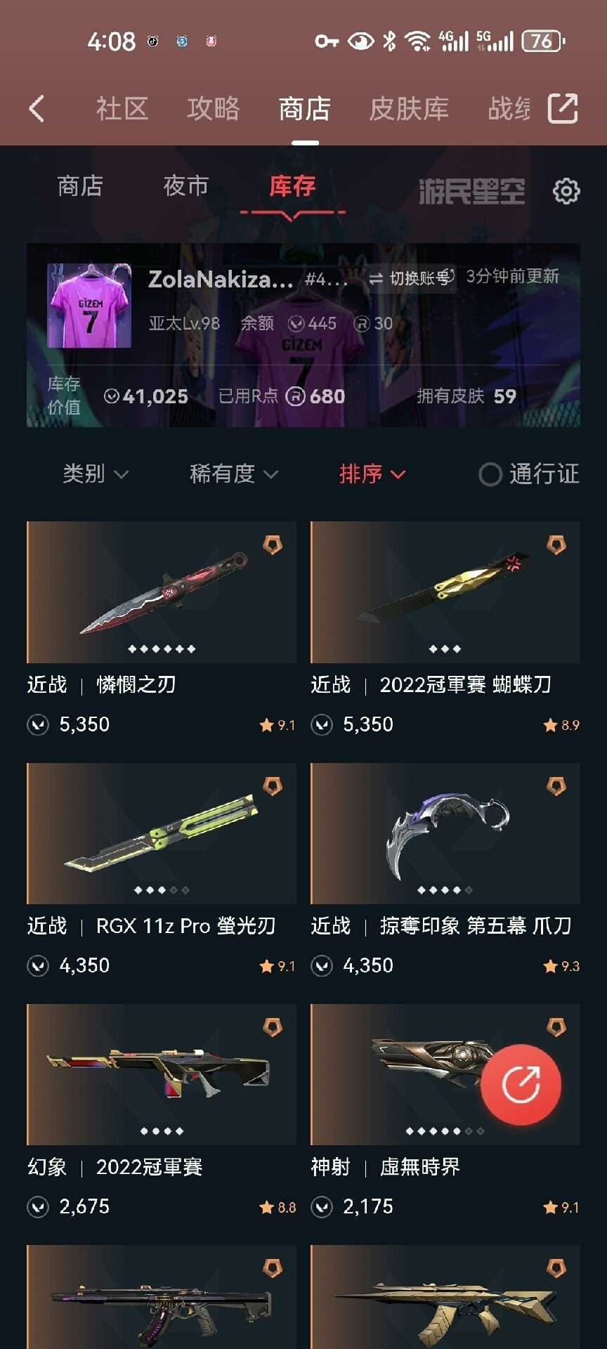 毕业刀皮号2022冠军幻象 冠军蝴蝶刀 掠夺爪刀 RGX显卡蝴蝶刀 可排位 4.1w库存 59皮