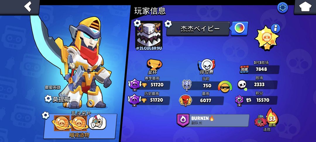 荒野乱斗 莫提斯差一两个满皮肤 5万杯 500➕皮肤