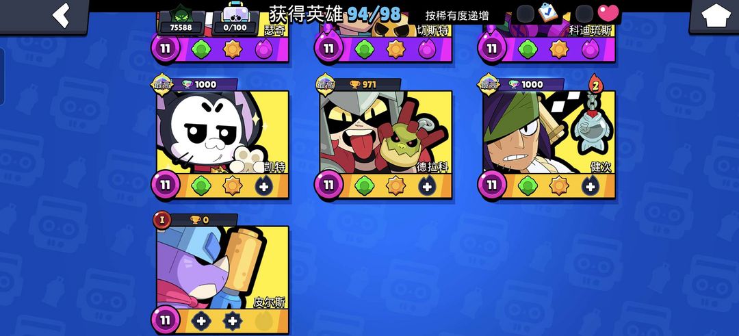 荒野乱斗高端帐号 50以上满级英雄 50以上极限充能 94英雄 13传奇英雄
