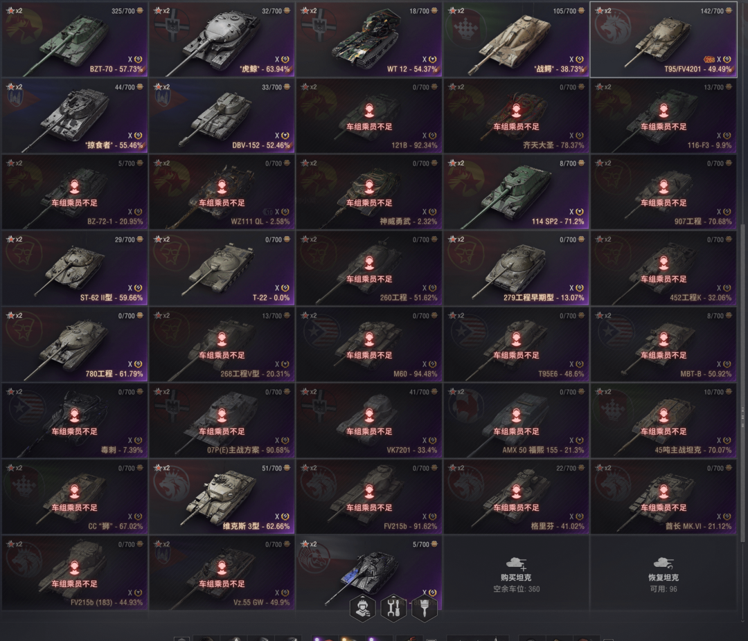 19XI骁勇、kzpj2、战鳄bzt70,黑岩、虎鲸 、107X秃酋,配件银币多,租前请看描述