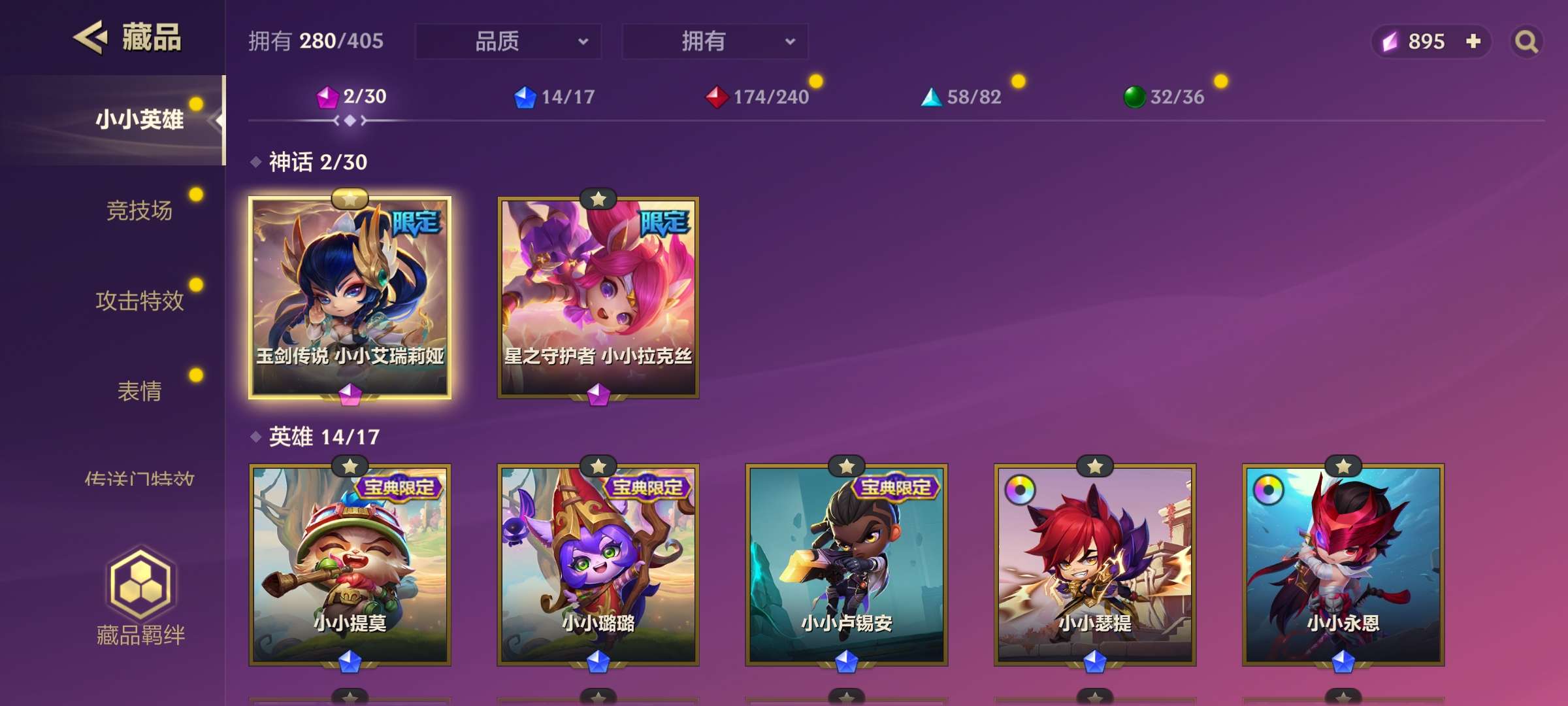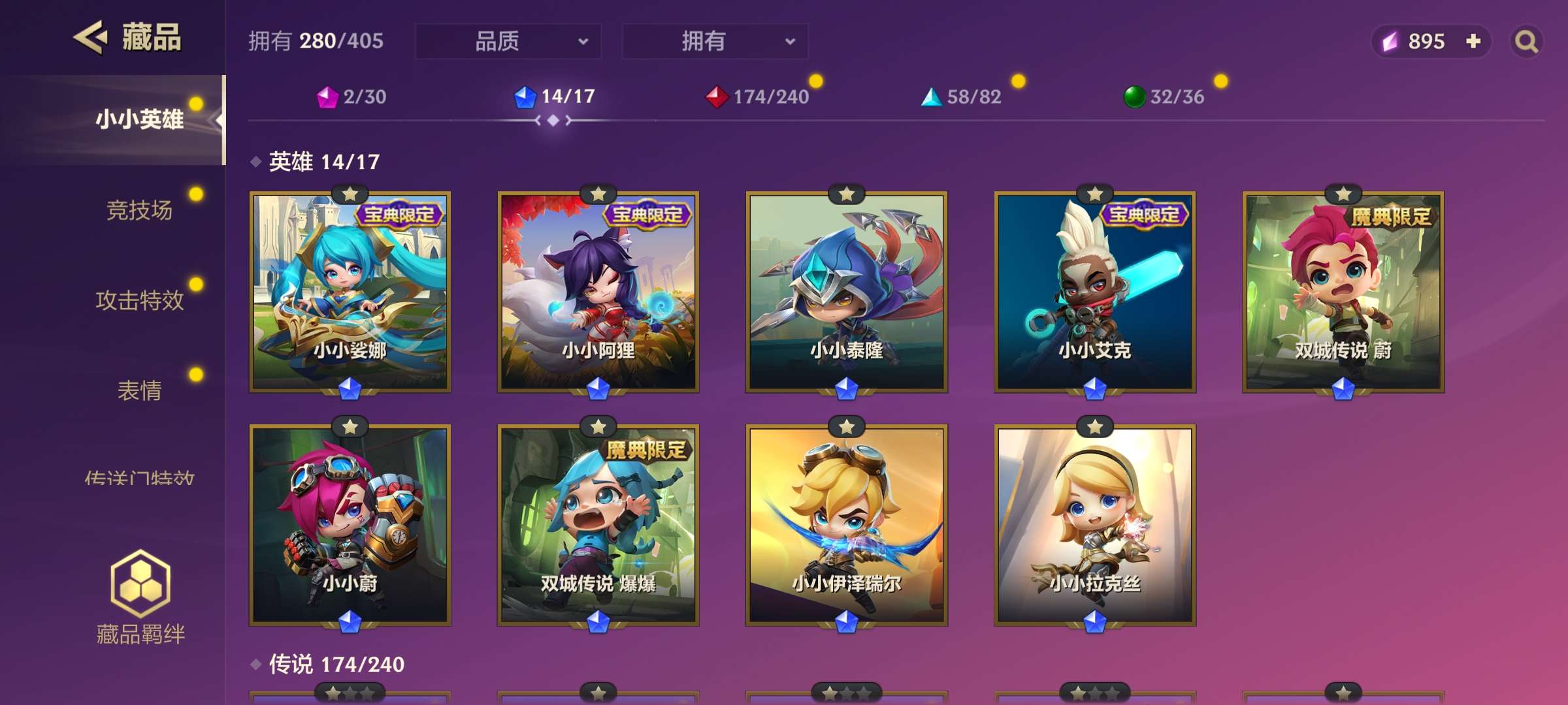 装备描述:传说刀妹 拉克丝 多小小英雄 多金克斯卧室等竞技场 号上东西不要动 排位匹配随便打