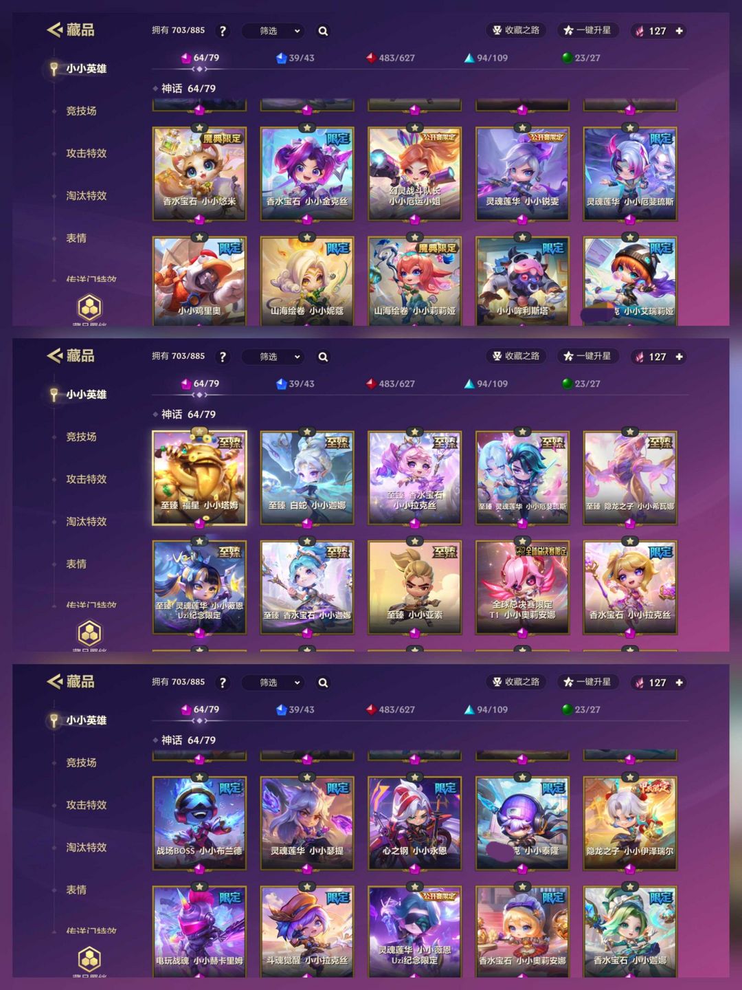 V12顶级♥8个至臻64个神话♥至臻塔姆至臻龙女♥5个神话攻击特效♥4个神话棋盘