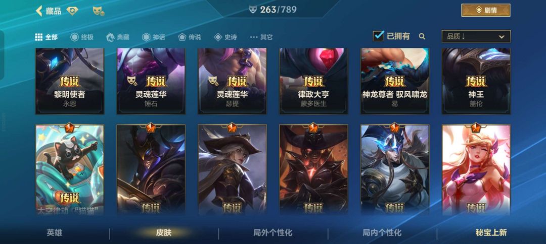 可打排位,中上皮肤居多,若无想要的皮肤见谅。