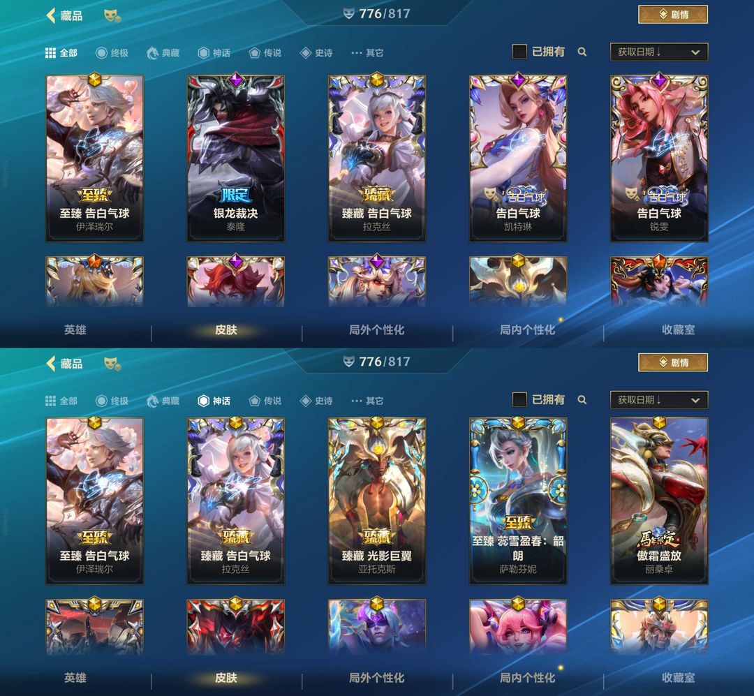 告白气球全✨金名776皮可排✨马年全套✨银龙裁决✨终极金克丝✨满典藏超武乾坤✨52神话