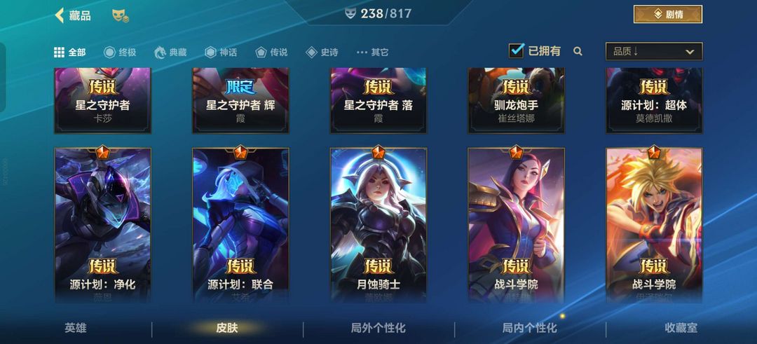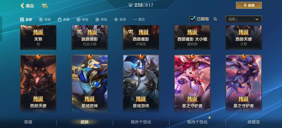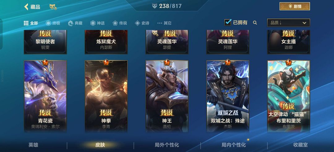 全英雄|238皮|2神话41传说116史诗|双城杰斯|春晖仙子卡莎|告白气球格温EZ锐雯|AD皮多