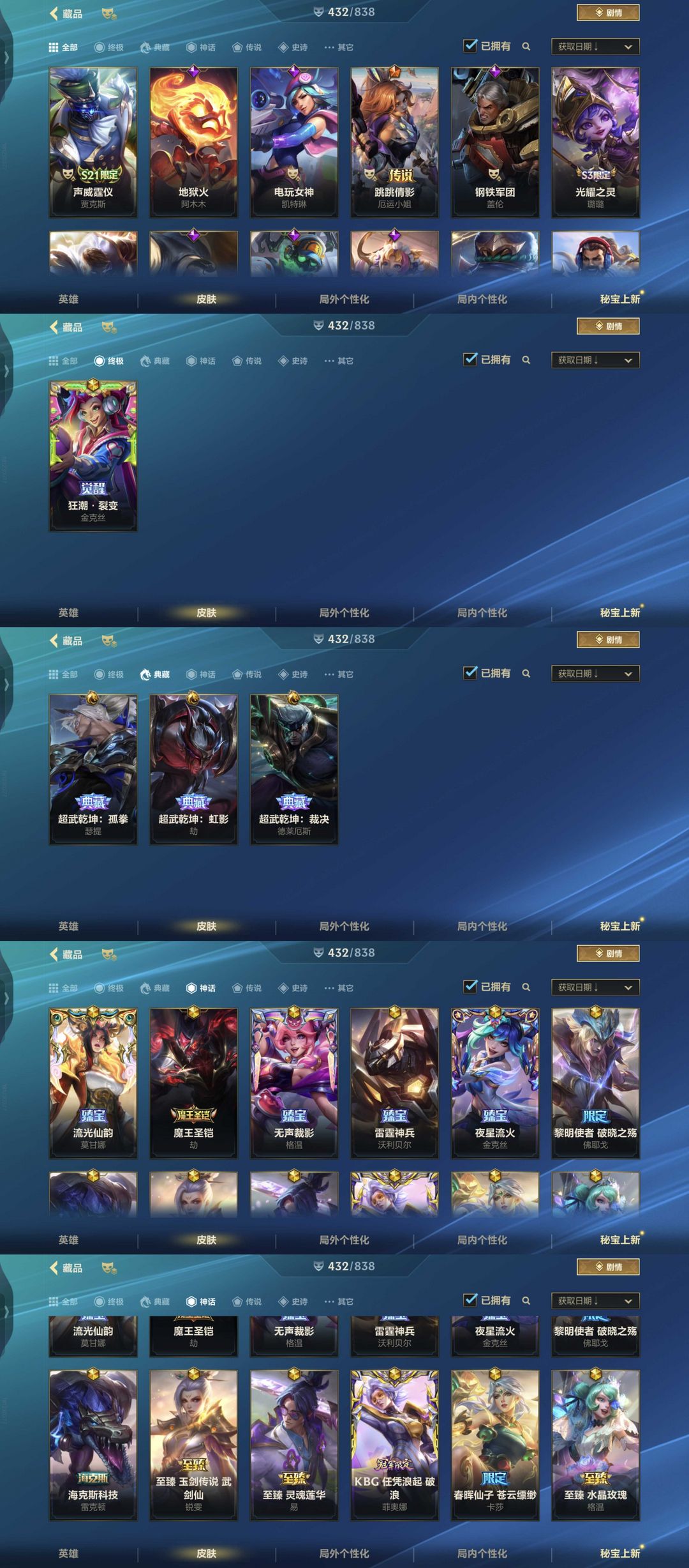 432皮✨3典藏12神话57传说✨狂潮裂变✨孤拳虹影裁决✨魔王圣铠无声裁影✨雷霆神兵夜星流火破晓之殇