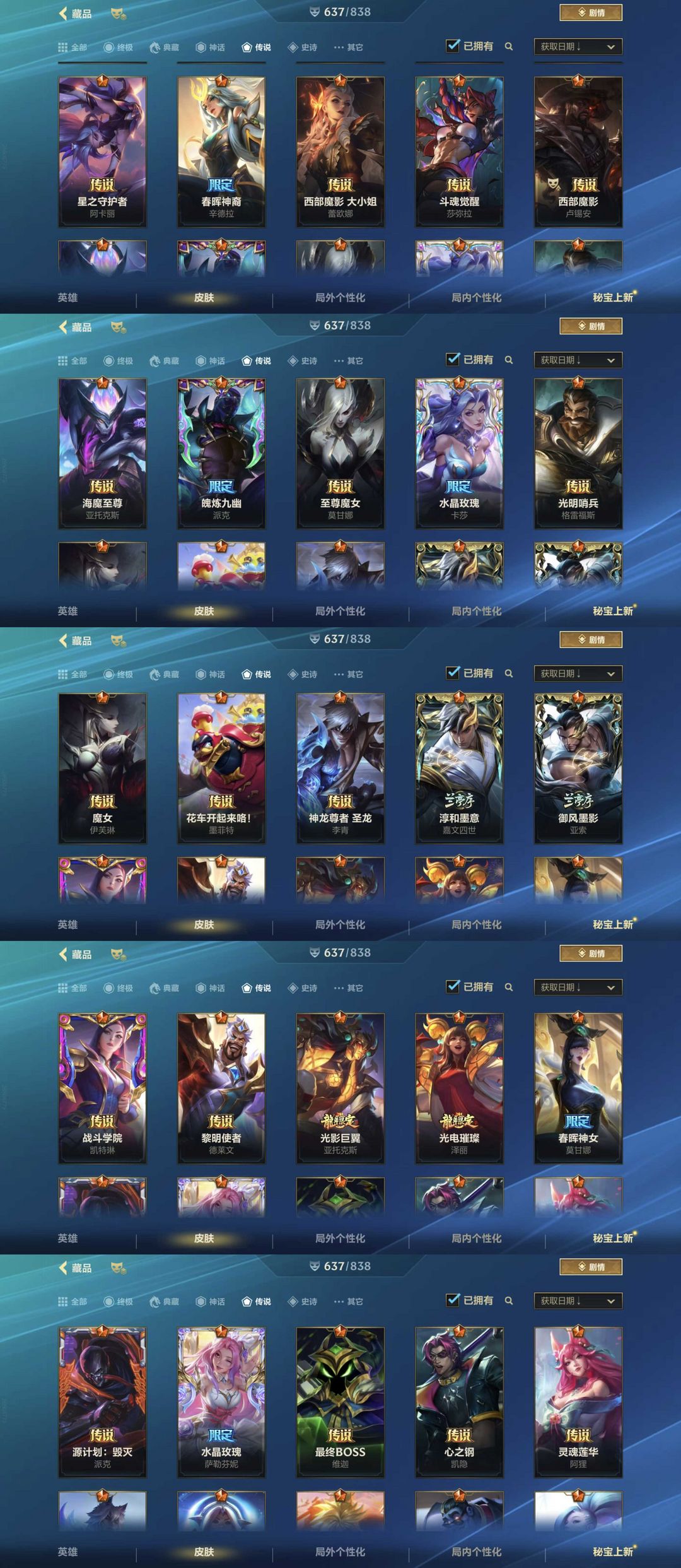 装备描述:该号全英雄,皮肤637个,终极1个,神话16个,传说78个,请勿挂机谢谢~遇到上去还在游戏中帮忙打完不要挂机谢谢!!!祝您游戏愉快~