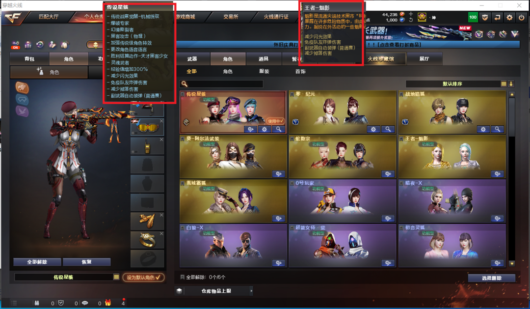 装备描述:排位:可以、、、、、、、、、、、、、、爆破四防:幻神音效(23白鲨皮肤)、传说幽瞳、98K星神、传说幽冥、白虎、QBZ金色蔷薇、、、幻神音效、裁决音效、星神音效、黑骑士音效、、、1套玄豹、1套雷霆王者、、、爆破四防(传说星骇、王者魅影、超能女侍)