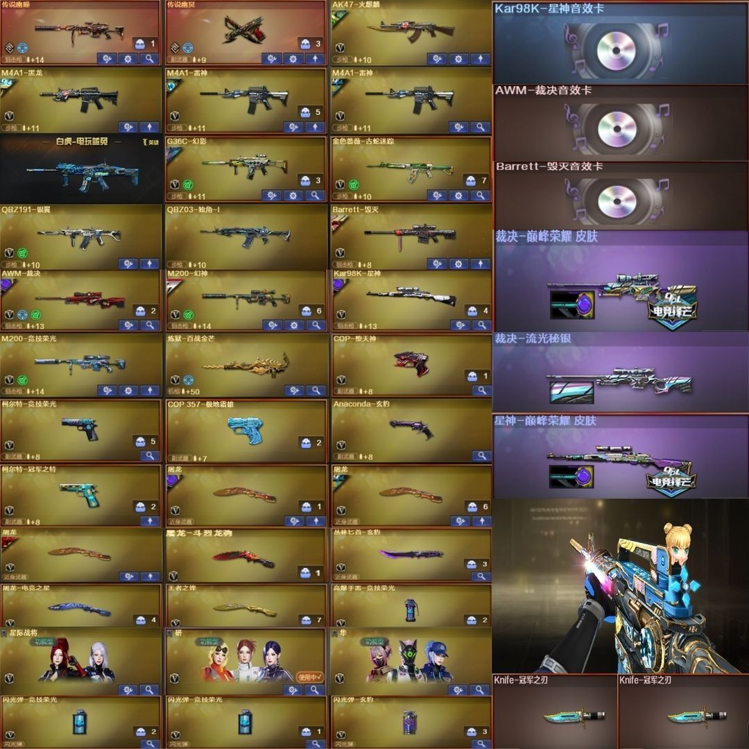 限制: 租号17次及以上 | 撤单率<50.00%才可租用此帐号装备描述:㊗️各位老板六六大顺,心想事成,万事如意。 王者武器:王者之锋-觉醒版 英雄武器:屠龙;AK47-无影;AK47-火麒麟;Barrett-毁灭;M4A1-雷神;M4A1-黑龙;M200-幻神;M200-竞技荣光;柯尔特-冠军之特;柯尔特-竞技荣光;烟雾弹-竞技荣光;闪光弹-竞技荣光;高爆手雷-竞技荣光;丛林匕首-玄豹;Anaconda-玄豹;闪光弹-玄豹;传说幽瞳;G36C-幻影;传说幽冥;Kar98K-星神;擎天;COP-堕天神;AWM-裁决 主武器:M4A1-雷神;贝雷塔687-迷彩;魂·雷神-诺拉;加利尔ACE-零号;雷蛇加特林;贝雷塔687-蓝色魅影;魂·HK417-朱雀-凤灵;M60-战神8;阿梅利轻机枪-暗夜风暴;M4A1-红色线条;末日裁决者;M14EBR 暗夜;C.A.T;Barrett-捣乱兔兔;M4A1-隐袭;M16-S;贝雷塔-甜蜜火力;AWM-蓝水晶;M37-春桃;M4A1-S;G36C-幻影;CPW-动力-潘多拉;AWM-A;烈火-喵星特勤;斯泰尔-巧克力;AWM-S-狂獠 副武器:胜利之火;沙鹰-枪王排位;COP-金蝉子-枪王排位;