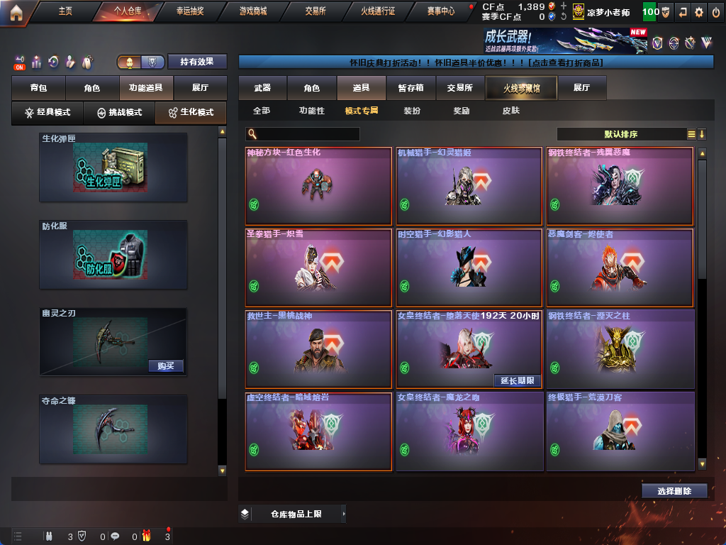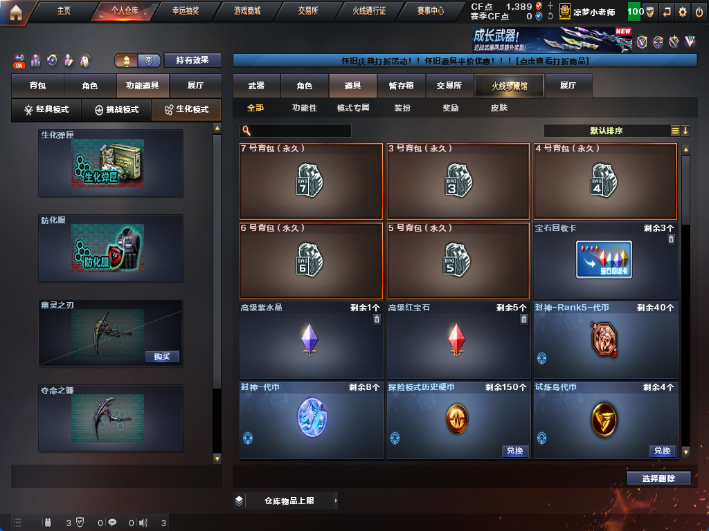 幻影猎人♉16生化皮肤♉四防生化背包♉斯泰尔蝴蝶♉龙枪追击毒蜂♉6烈龙满榴弹减速雷无炽芒蝶刃6盘6烈