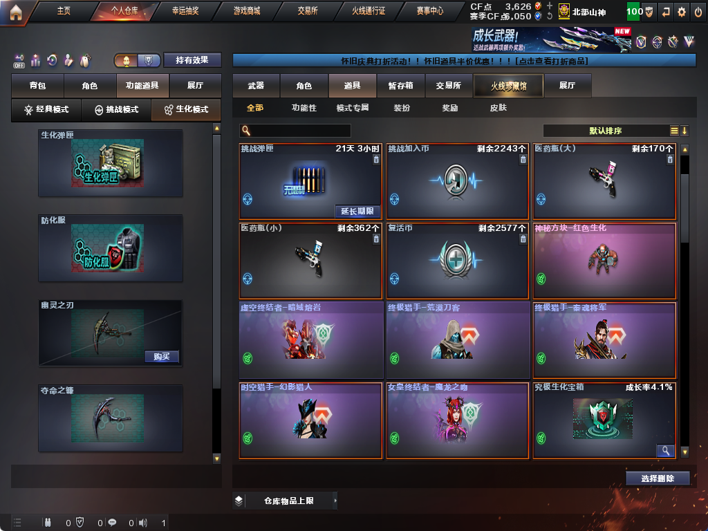 生化炽芒蝶刃X2✨时空猎手✨斯泰尔蝴蝶✨生化6盘6烈✨炼狱带皮可排位✨四防生化背包✨减速雷满榴弹全鬼