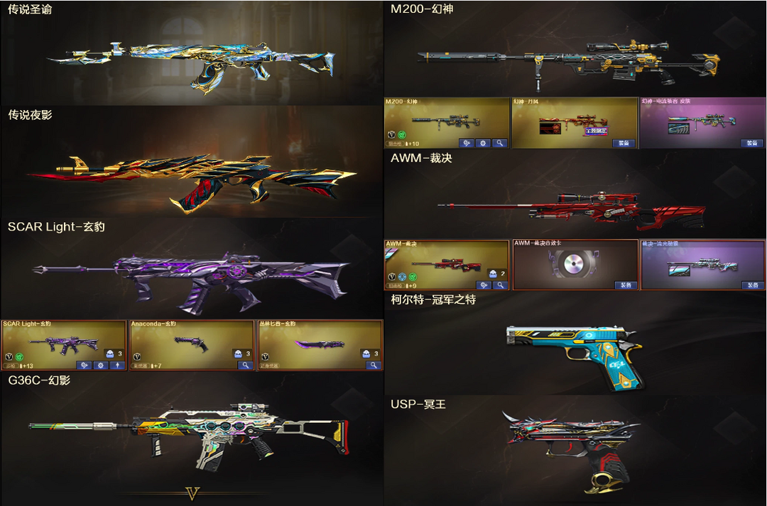 传说圣谕夜影❤幻神电流丹凤+裁决羽挚音效卡❤玄豹套G36C幻影+冠军之特USP冥王❤4防魅影潘多拉