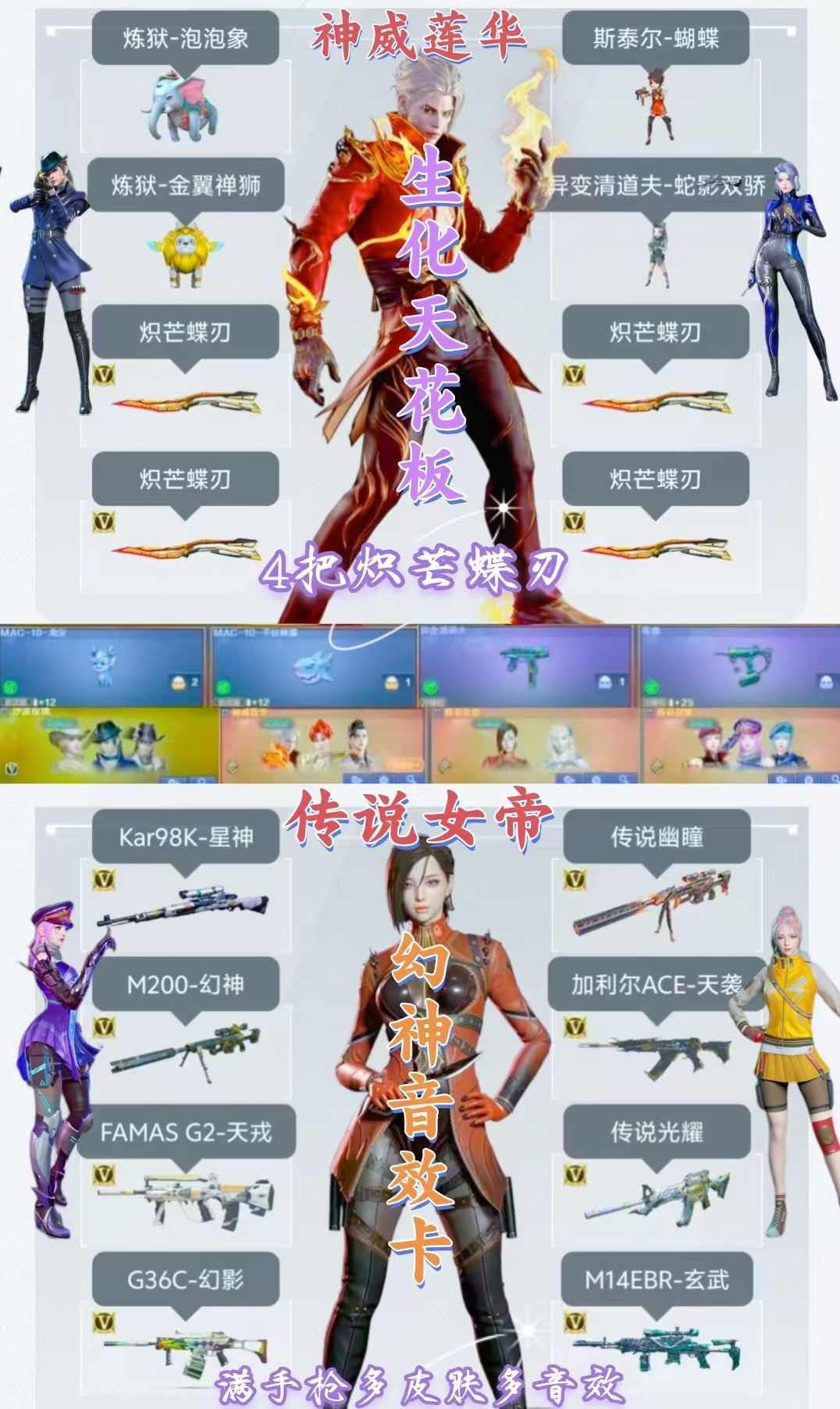 神威莲华4把炽芒蝶刃金狮蓝象炼狱泡泡象传说女帝沙漠玫瑰蝴蝶清道夫蛇影双娇生化6盘6烈幻神音效卡