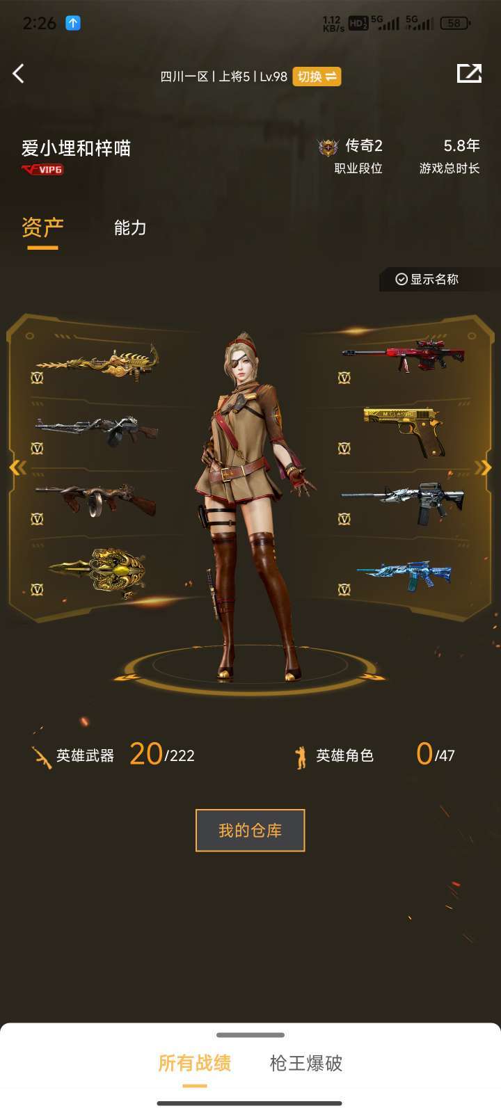 装备描述:可排位,有圣泉剑客,钢铁和女皇皮肤,近身武器有镜手斧和黄金生化钩,有生化手雷
