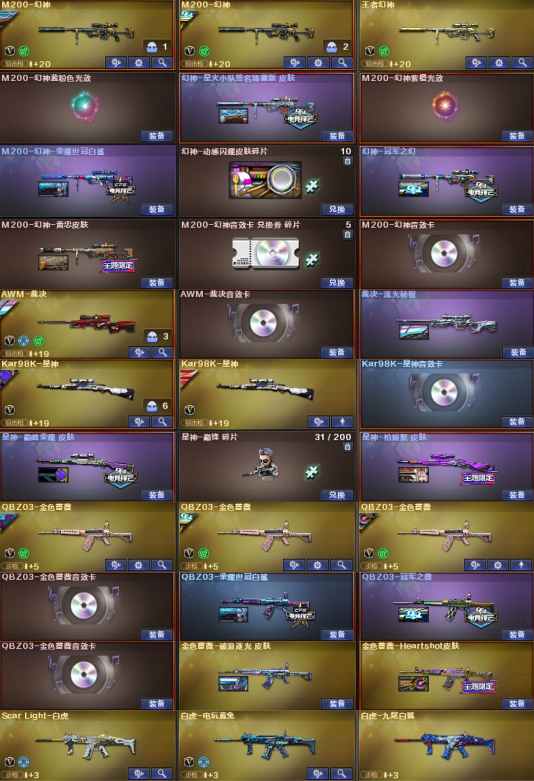 幽瞳灵眸圣谕幻影3冠特⭐幻神音效卡星火冠幻白鲨⭐裁决音效卡巅峰⭐QBZ冠薇白鲨4皮⭐白虎星神卡巅峰
