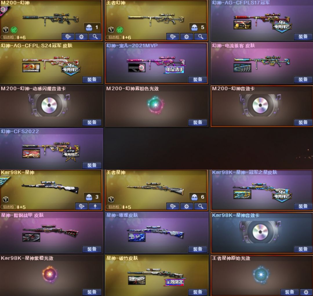 5套幻兽女帝灵眸圣谕幻影天戎⭐幻神音效卡宠儿双AG5皮⭐裁决音效卡5皮⭐白虎白鲨AG5皮⭐QBZ冠薇