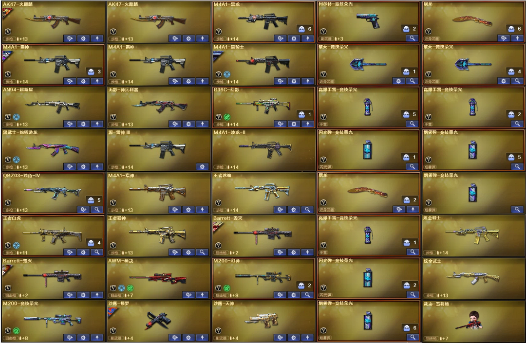 爆破❤幻神裁决+竞技荣光❤G36C幻影QBZ蔷薇独角4级+王者白虎冰魄+竞技柯尔特❤4防云悠悠