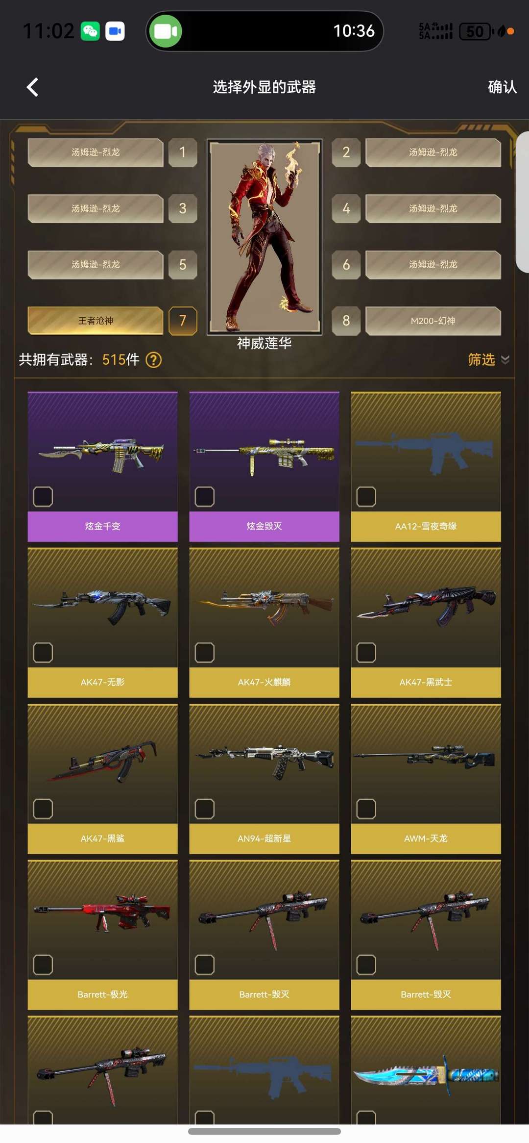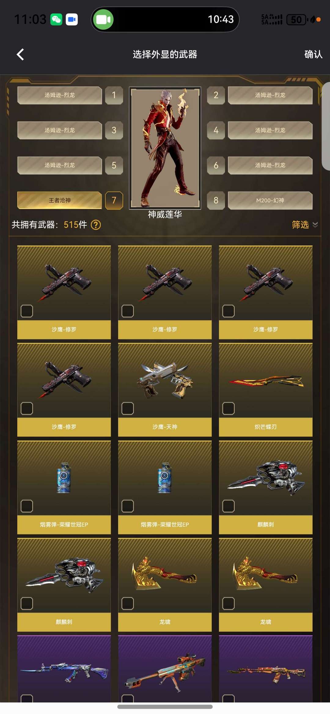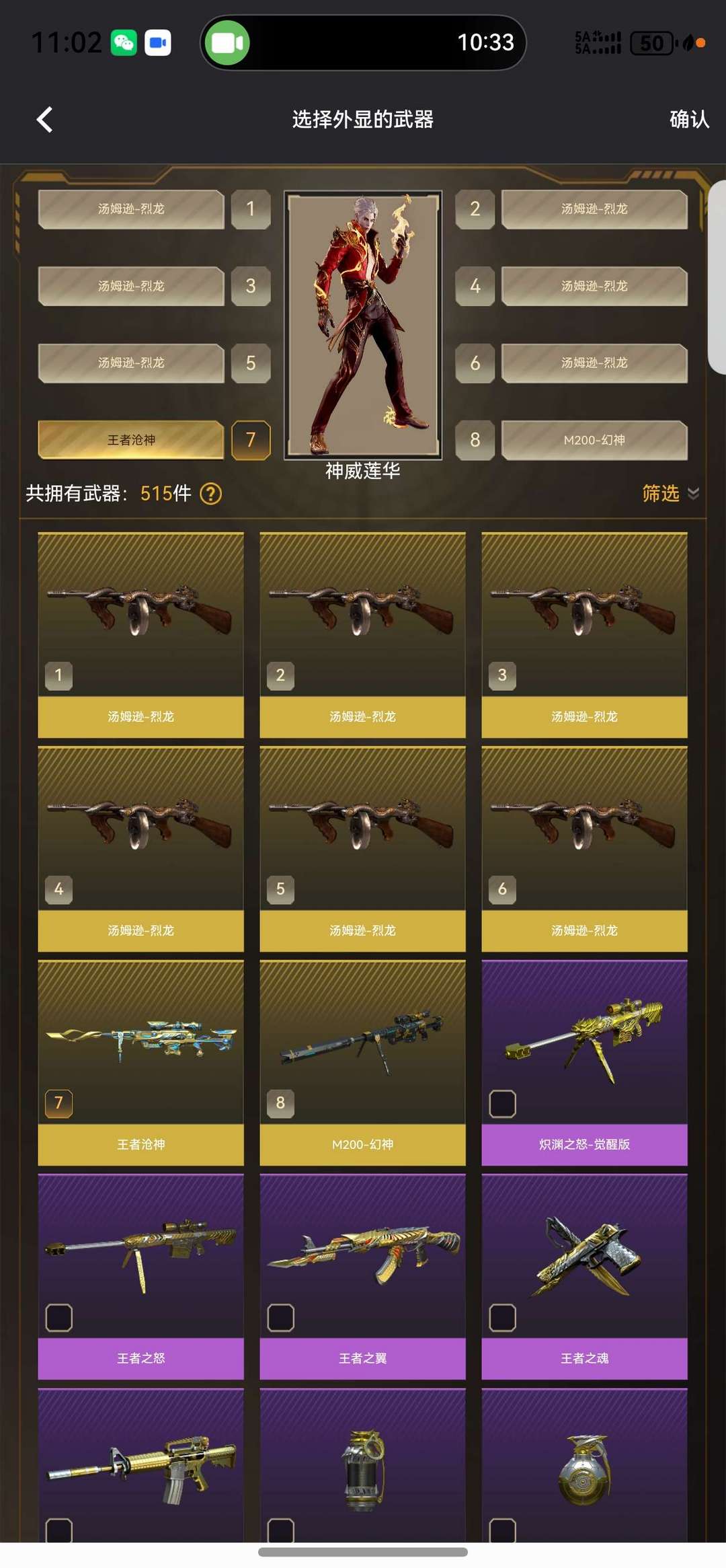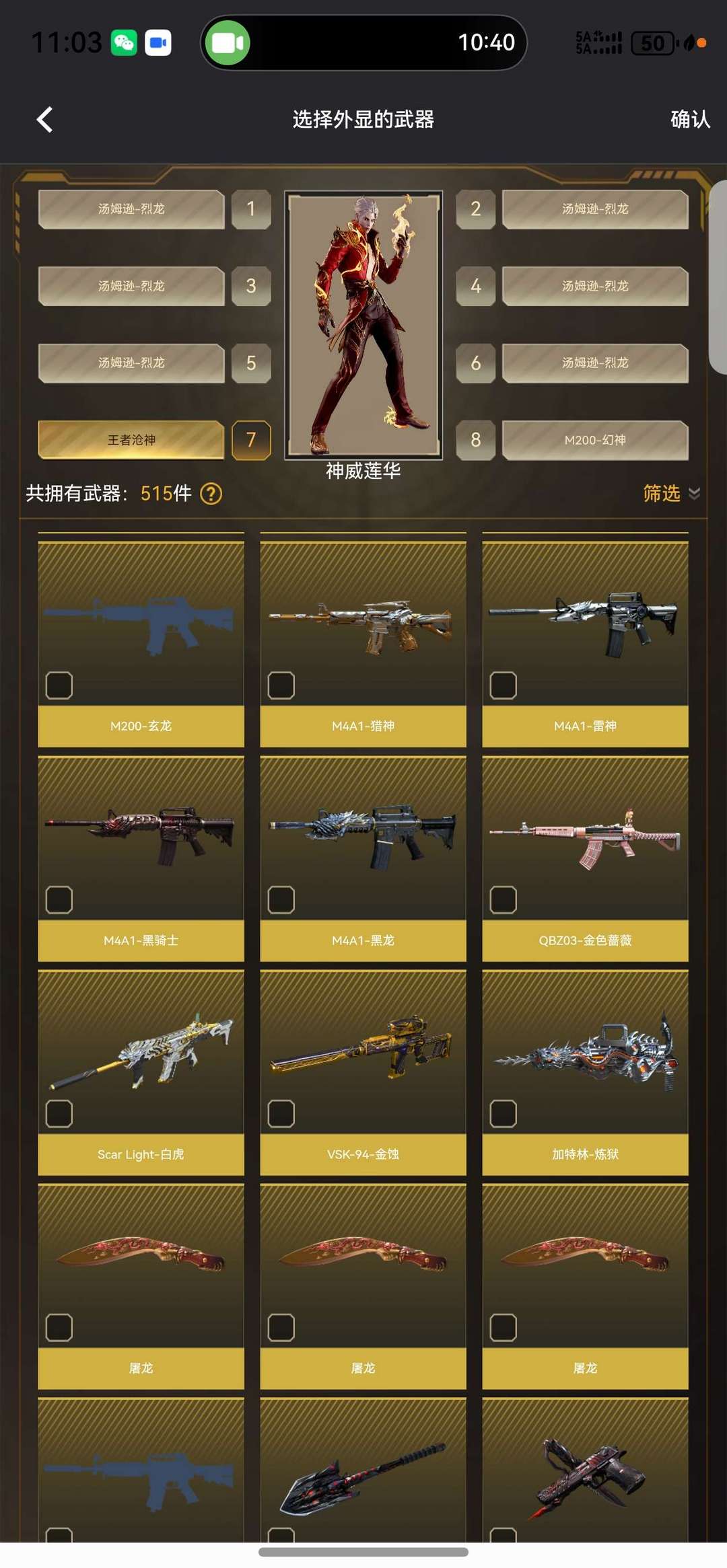 王者沧神、神威莲华、M200-幻神、炽渊之怒、S蝴蝶刀、car Light-白虎、六烈、王者之怒