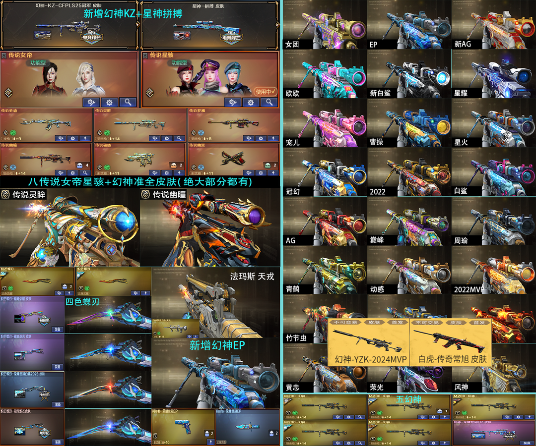 传说女帝星骇幽瞳圣谕新YZK幻神准全皮肤满音效❤天戎11色星神黯钢15色QBZ宠儿拼搏常旭❤蝶刃全皮