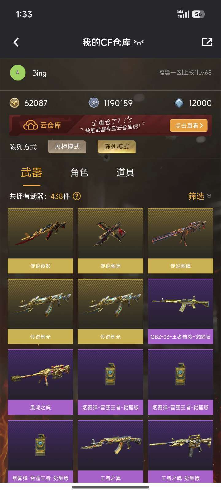 装备描述:传说武器 幻神 传说角色 雷神 蔷薇 基本的英雄武器都有