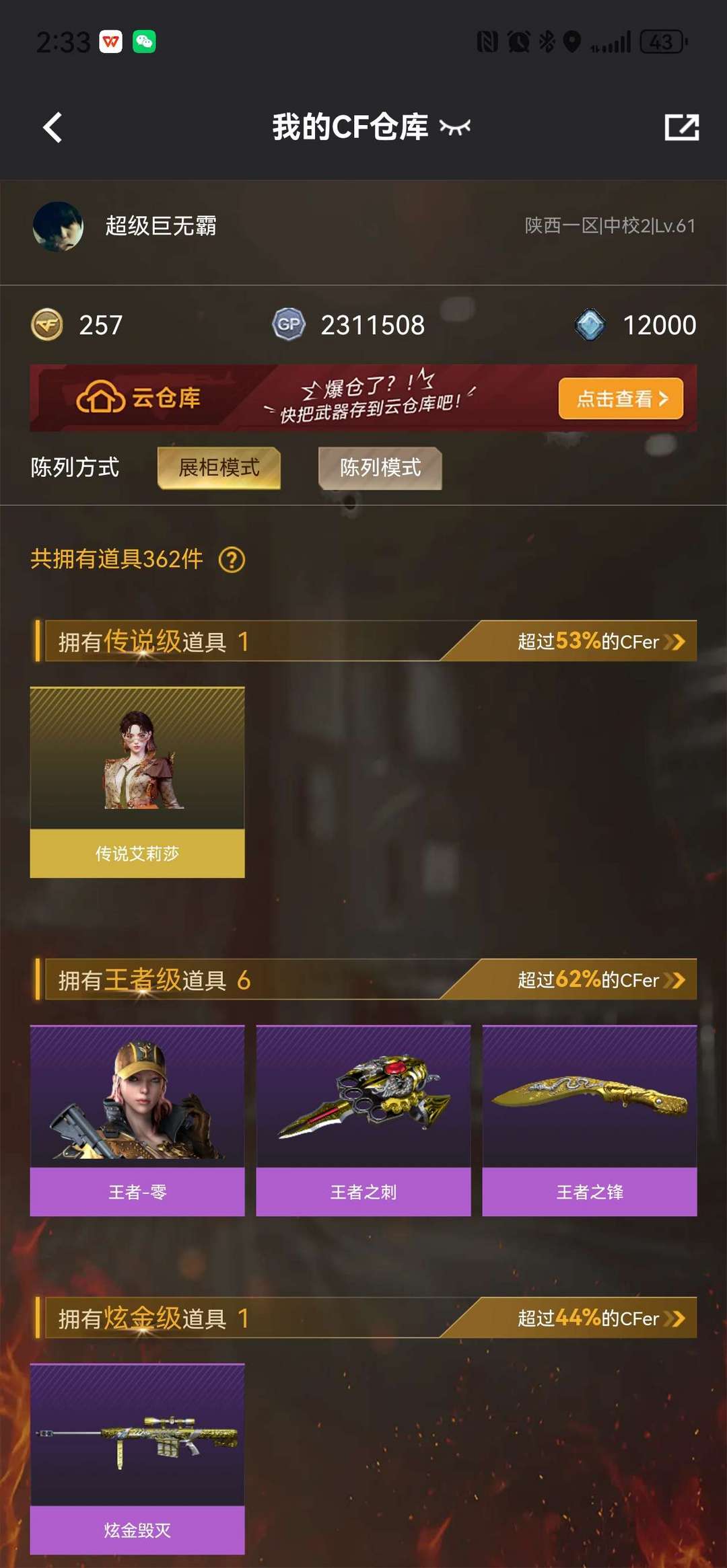 装备描述:传说艾丽莎+王者风神+王者之魄+28V极品爆破号