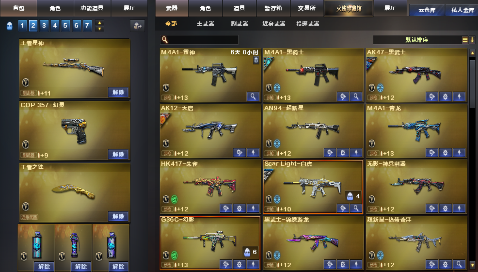 幻神三件套⭐6烈龙+传说幽瞳影煞暗裔⭐王者星神+宠儿QBZ+白鲨白虎+G36C⭐冠军之刃+炽芒蝶刃