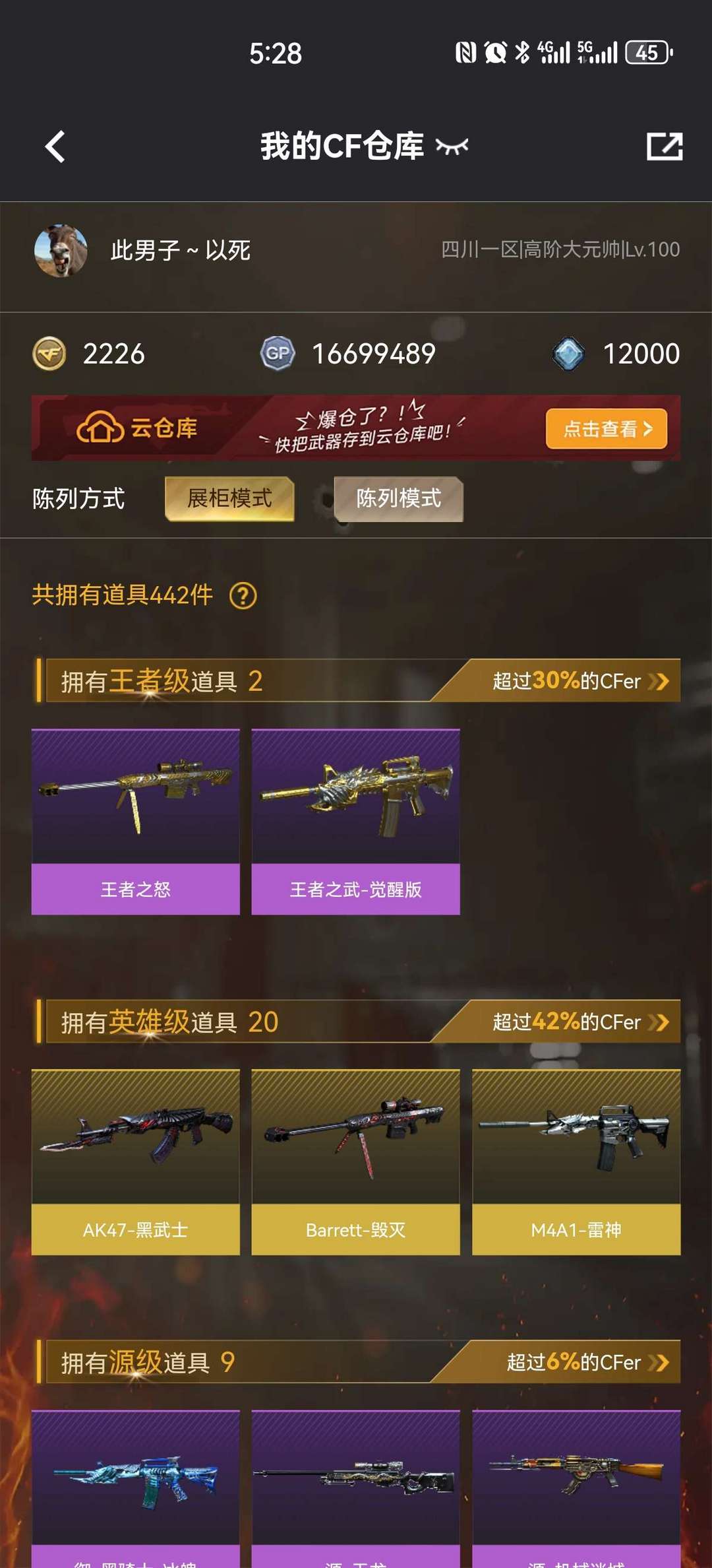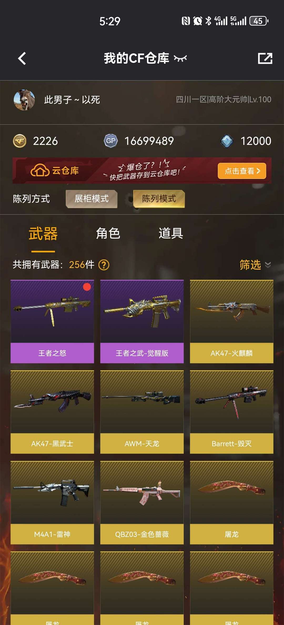 王者武器,英雄武器若干,还有稀有喵喵抢,祝你游戏愉快