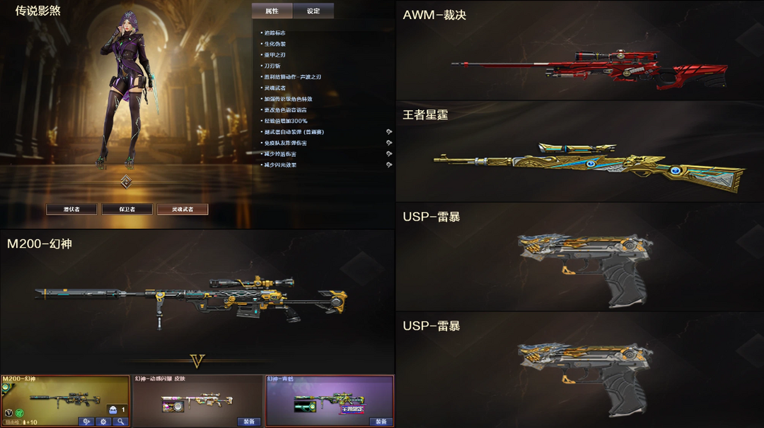 传说影煞4防❤幻神动感青鹤+裁决王者星霆❤白虎幻影QBZ蔷薇+2USP雷暴柯尔特COP玉锋❤4防魅影