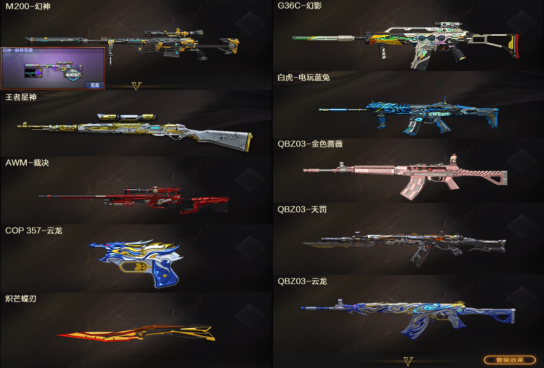 爆破☎幻神巅峰荣耀+王者星神裁决☎QBZ蔷薇天罚云龙+G36C幻影白虎+3COP炽芒蝶刃☎3防研