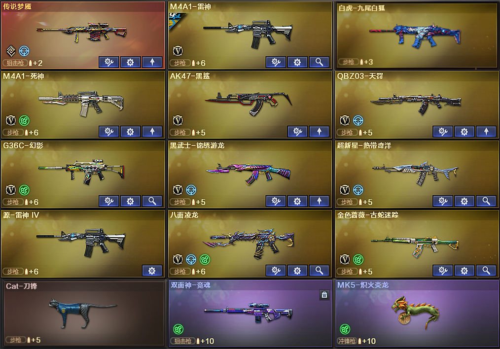 ★传说梦魇八面凌龙G36C幻影天罚VSK金蚀★荣耀之魄白虎-九尾白狐猫枪炎龙律动熊