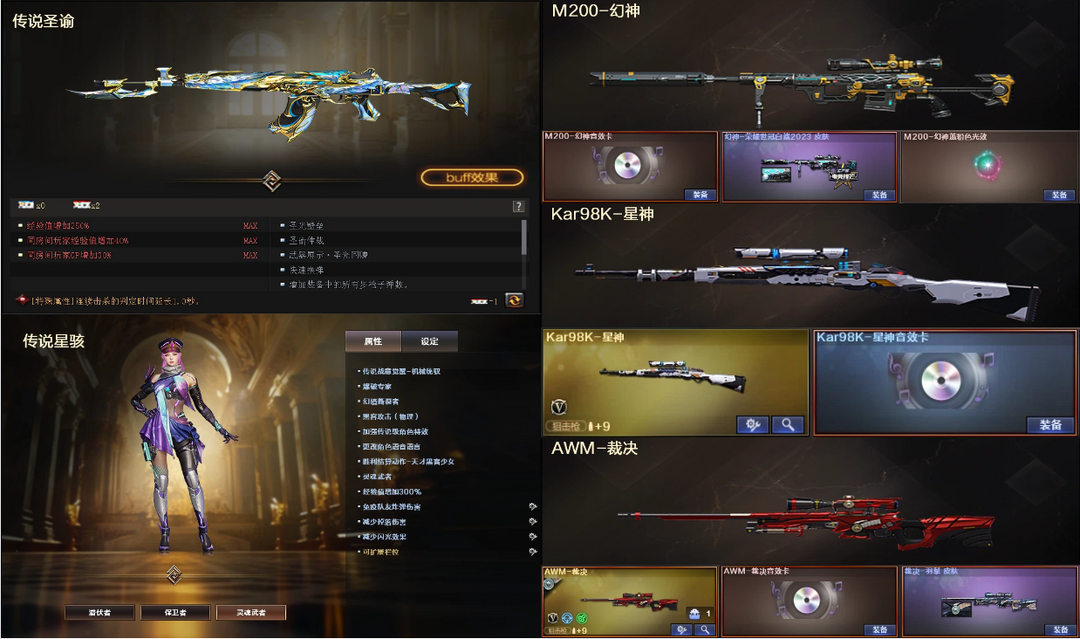 传说圣谕3防星骇⭐幻神白鲨竞技音效卡+裁决星神三件套⭐白虎玄豹套幻影QBZ蔷薇2柯尔特⭐4防貂蝉战