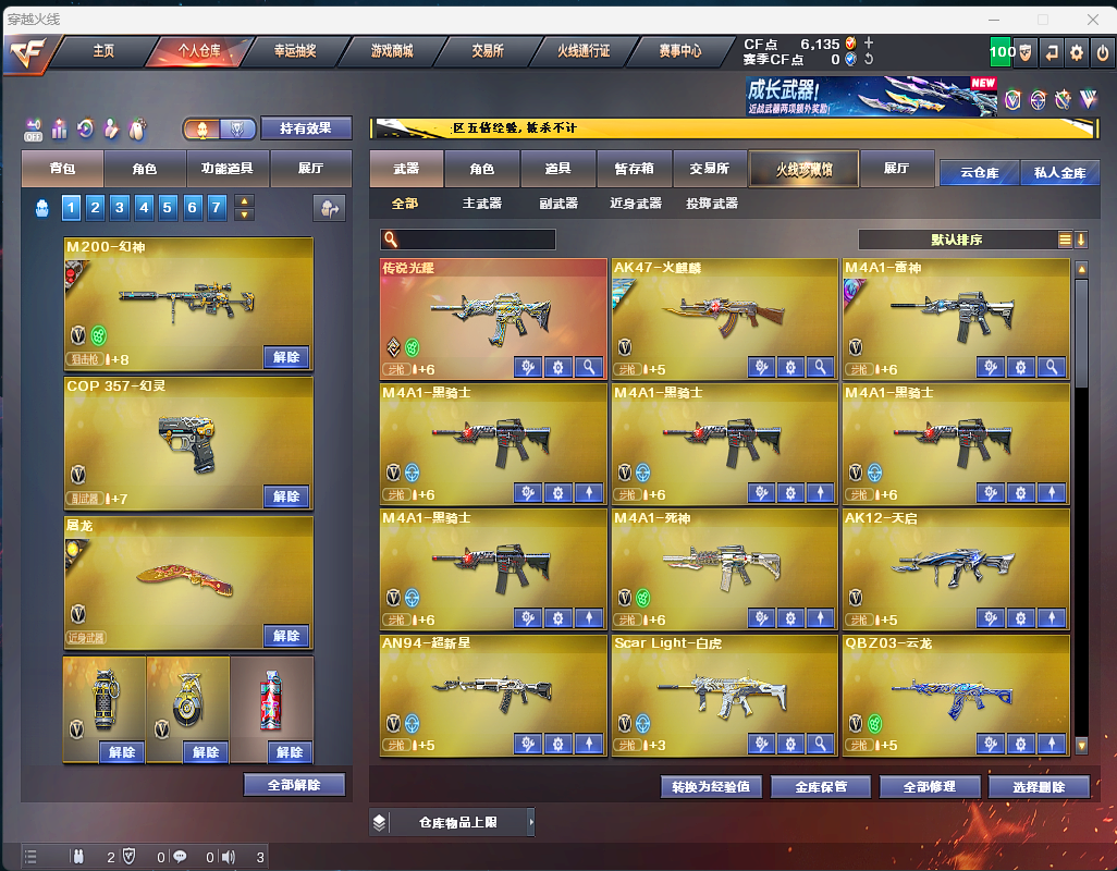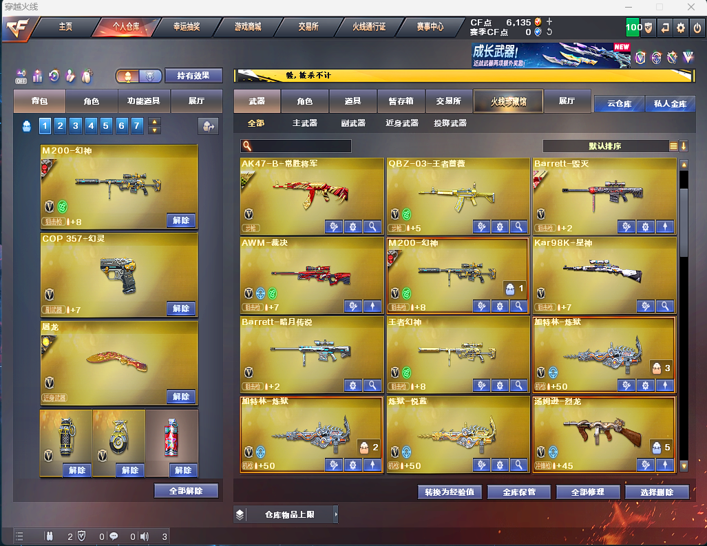 装备描述:✅幻神念旧 幻神音效卡✅98k星神✅炽芒蝶刃✅白虎✅QBZ金色蔷薇✅6烈龙+蝴蝶✅