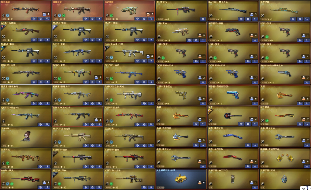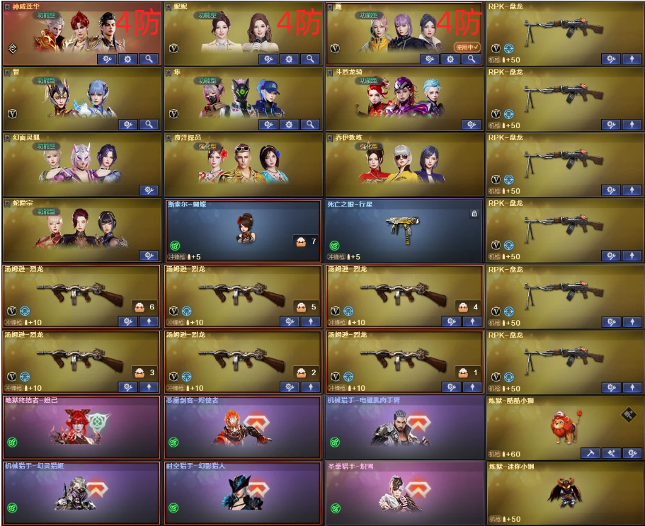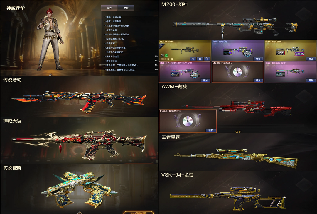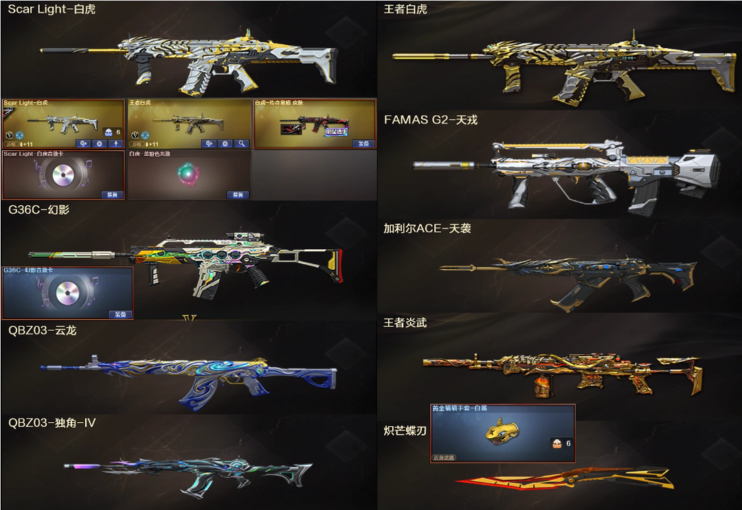4传说浩劫天绫4防神威莲华✅幻神裁决白虎幻影三件套✅星神QBZ天戎天袭⒑满副满刀✅狮子小刚6盘6烈龙