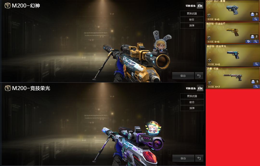 装备描述:排位:可以、、、、、、、、、、、、爆破四防:幻神、M200-竞技荣光、COP雷霆、柯尔特-百战金芒、柯尔特竞技荣光、幻兽-沙鹰、G36幻影、白虎之魄、QBZ金色蔷薇、、、1套幻兽、3套竞技荣光、、、爆破四防(云悠悠)
