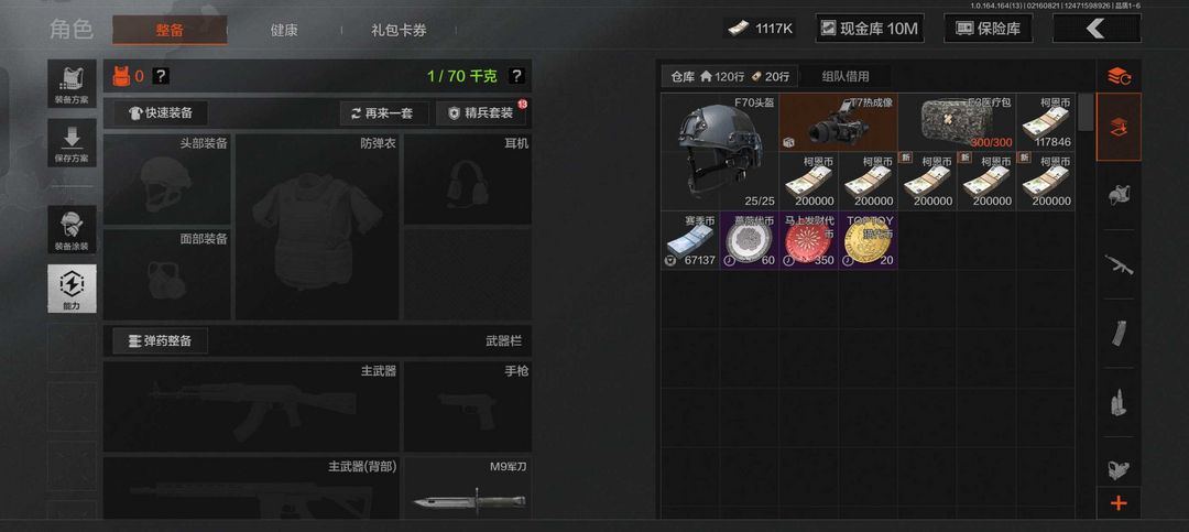 仓库有T7热成像和1400K纯币可自行购买喜欢的装备不包括现金裤,祝老板玩的开心