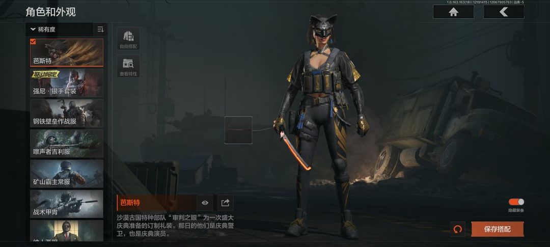 13刀1橙皮6金皮10金枪2手套,芭斯特,强尼银手套装,钢铁壁垒作战服,噤声者吉利服,矿山霸主常服,