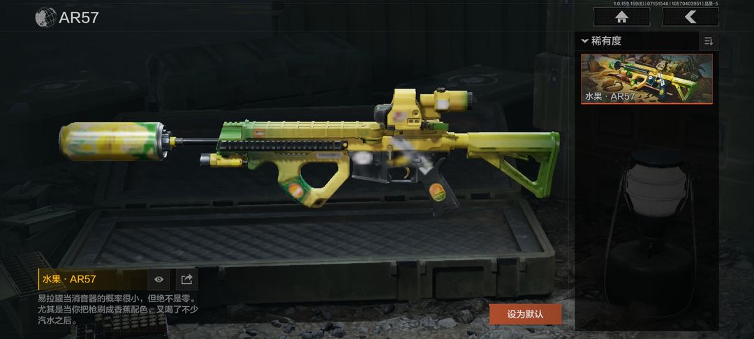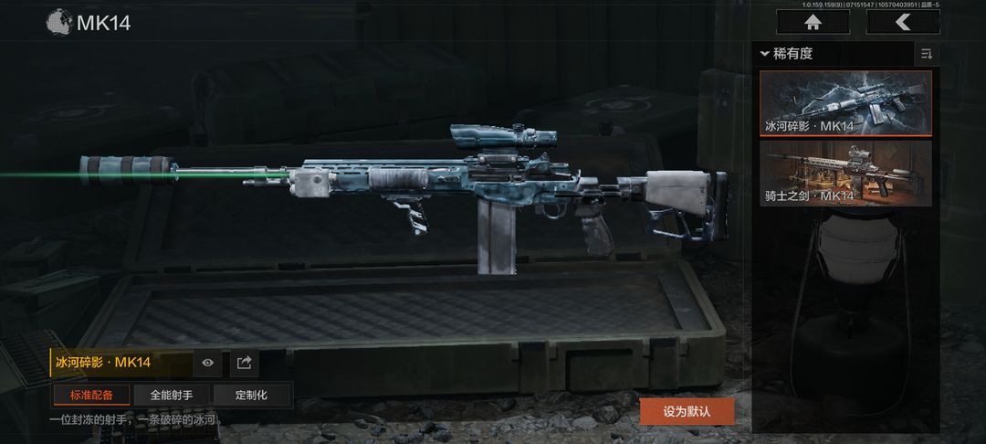 装备描述:【角色皮肤】:硝云余响作战服,都护铁衣战术甲胄,钢铁壁垒作战服,噤声者吉利服,矿山霸主常服;【近战武器】:三尺万仞战术剑,涂鸦利刃,胜利军刀,明刀绣春,冬日冰镐,急袭弯刀,精英指虎,瑞兔折刀,工兵铲,来战开山刀;【手套】:玉鸾挂枝手套,角弓得控手套,战术甲胄防护手套,急袭手套;【突击步枪】:竞技FAL,战术大师FAL,骑士之