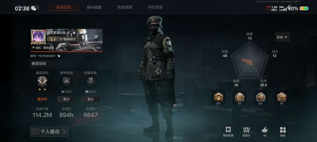 回归账号,仓库价值110M,保险库大金若干,科恩币38M,H4金皮两个,其他金皮若干,突击匕首
