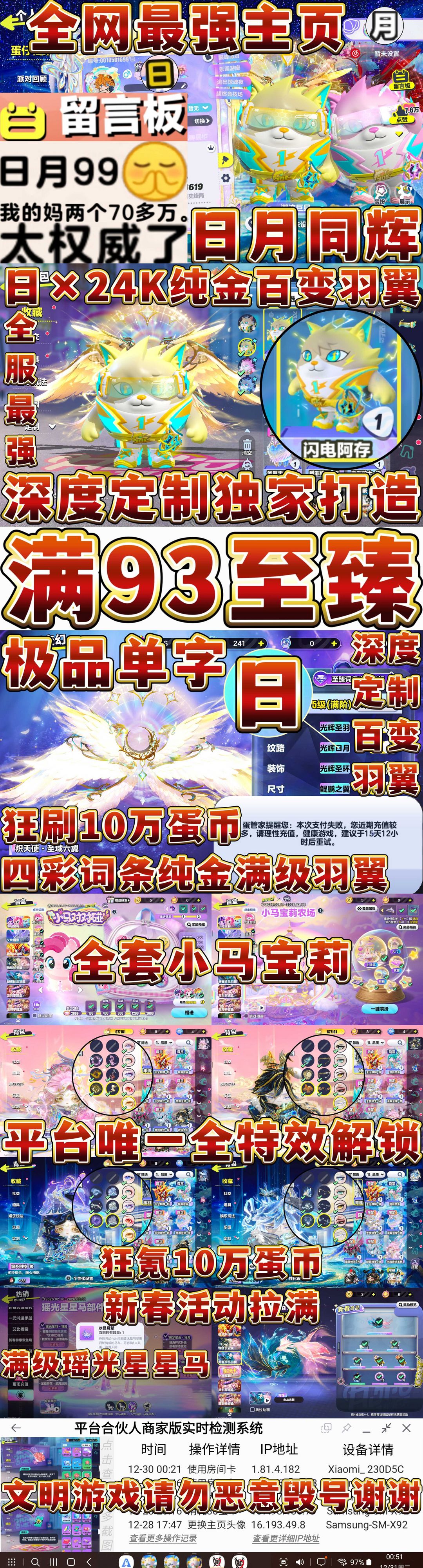 装备描述:⚠️⚠️⚠️为监控账号安全所以云 上号器!非本机!请知悉撤单拉黑⚠️⚠️⚠️ 上号时请提前调高音量,否则会出现没声音的或者声音小的情况,如屏幕适配异常,多退出旋转屏幕方向重进几次,建议用能全屏的设备进入游戏,并在设置页面开启高帧数,达到最佳显示效果 新增到时不下(仅限淡季,跟随平台)请联 系客服要到时不下的标准版,千万不要用极速版或渠道版,极速版及渠道应用商店下载的版本上号会闪退并且语音也无法使用!!! ⭐新内部铺大量免费送热度招合租人:详见店铺置顶⭐ ⭐喜欢请收藏账号,后期有福利或者降价第一时间得知⭐ 禁止申请修改二级密码或者购买改名卡等行为!!!违者全平台拉黑!!! ⚠️本店铺暂时不接任何私租,无论平台还是游戏内,请不要相信任何联 系方式⚠️ 换什么类型头像评论区告诉我(会自己卡着换的请自己卡着换就好),性别等可随便修改,除了置顶星仔客服外其他好友可以随便删 ⚠️号主不会在评论区或游戏内留下任何联 系方式,请不要相信⚠️