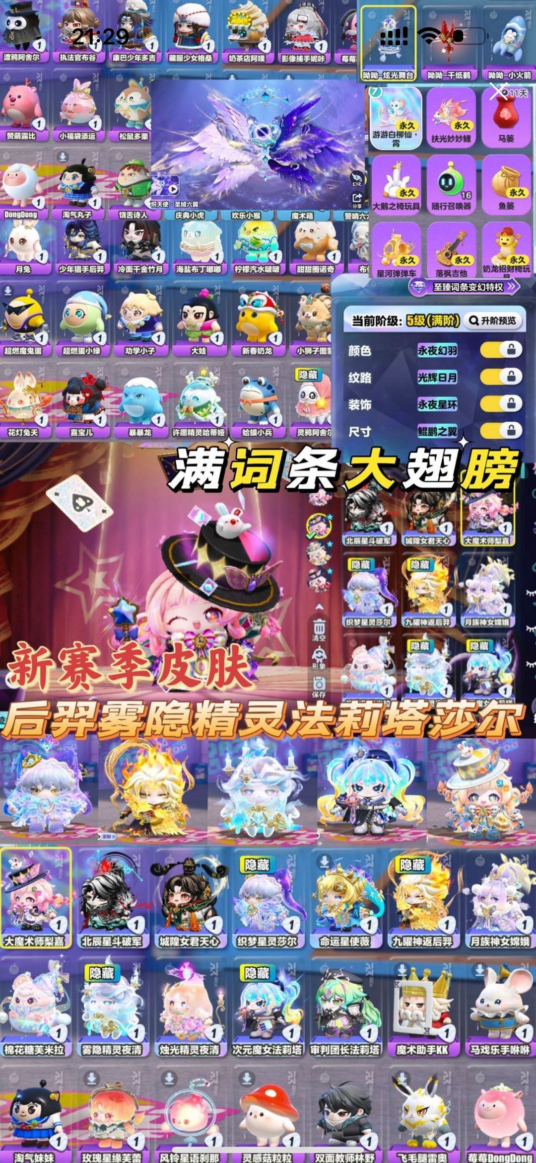 10w潮流满词条翅膀/魔术师梨嘉/法莉塔/神返后羿/雾隐精灵/织梦星灵莎尔/满阶蛇车/小羊/棉花糖芙
