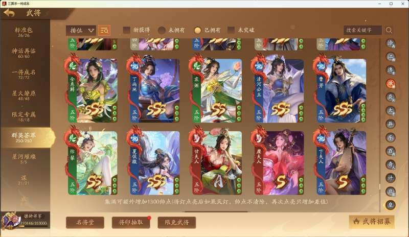 510将骠骑,8神武,新将闫象,谋法证,谋庞统,谋吴毅,谋蒋干,威孙尚香,威孙策已拿