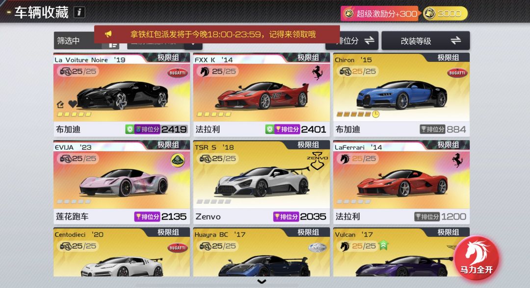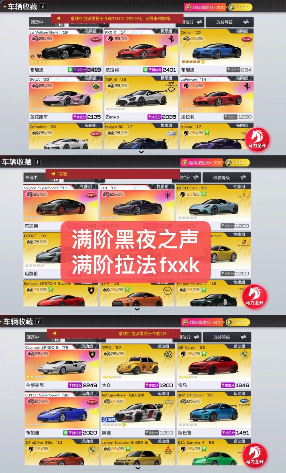 马年极限双王✅满阶布加迪/黑夜之声/满阶法拉利fxxk