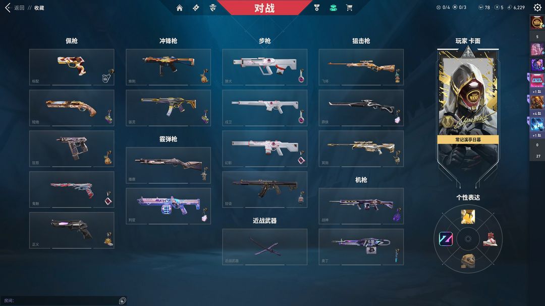 装备描述:可排位⭐25冠军全套⭐显卡AK⭐镭切太刀⭐显卡蝴蝶刀⭐落英飞旋⭐显卡爪刀⭐谐波音谱⭐创纪元AK⭐25冠军AK⭐显卡AK⭐塑水AK⭐猫猫AK⭐混沌AK⭐紫金AK⭐恶鬼AK⭐电音M4⭐千灵M4⭐弃王大狙⭐边陲西部正义⭐奇电正义⭐威龙鬼魅⭐盖亚鬼魅⭐VCT标配⭐请不要挂机,恶意挂机开挂永久拉黑,到时间可以打完当前对局