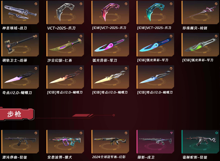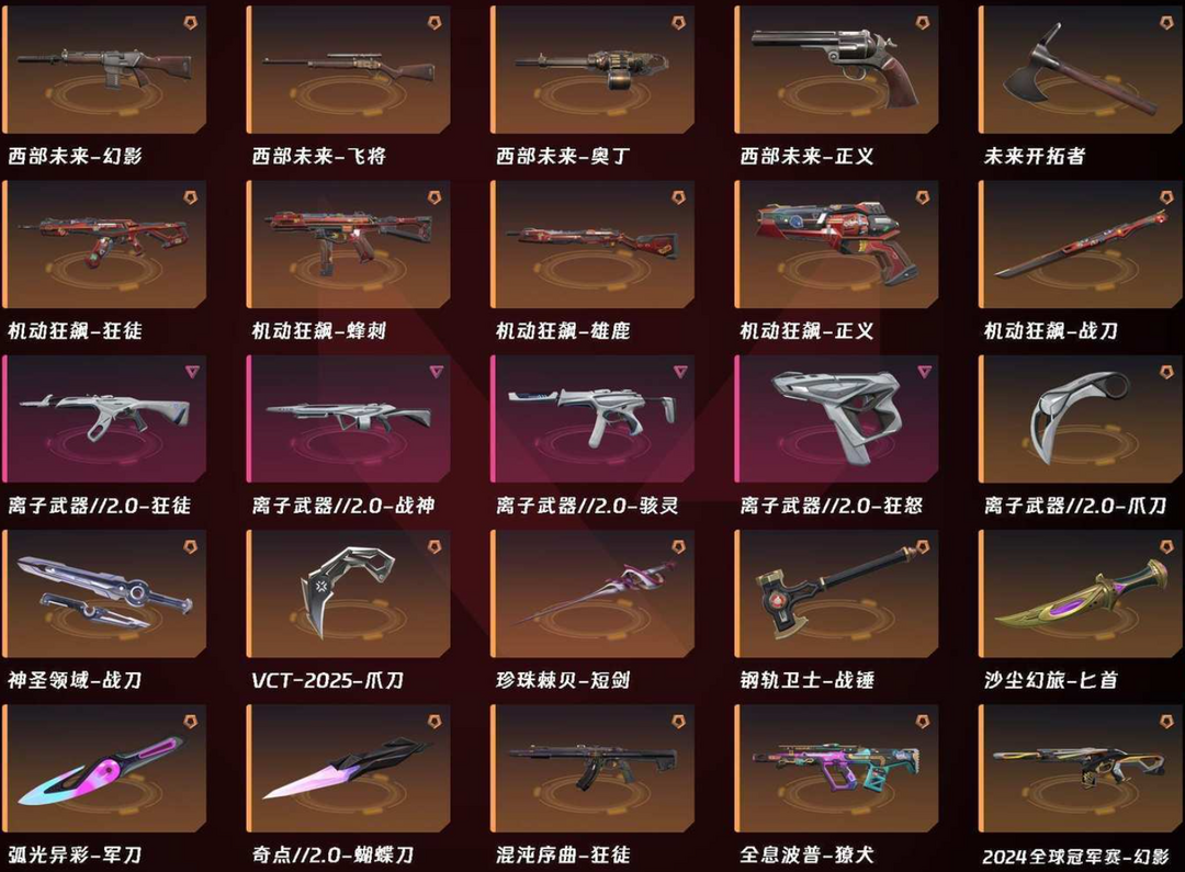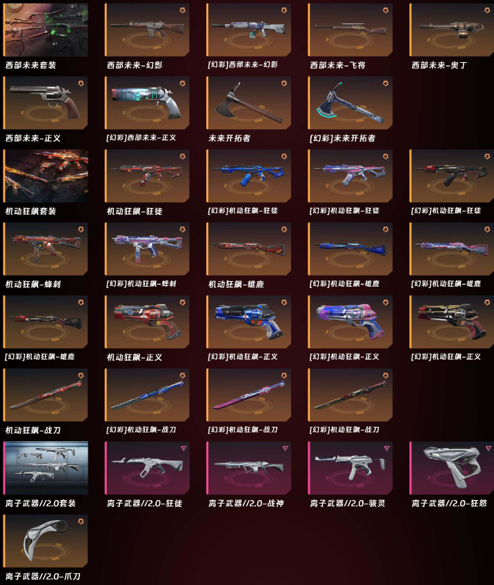 可排位大库存☆离子武器☆混沌序曲☆VCT爪刀☆西部套☆24全球套☆奇点2.0☆机动套☆各种散件☆炫彩
