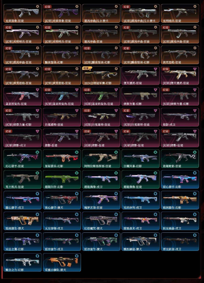 装备描述:千灵2.0掠影2.0显卡爪2022冠军光荣狂徒混沌撩犬混沌狂徒黯夜幻影洪荒 狂徒24幻影堕天狂徒盖亚狂徒日冕狂徒掠影戍卫掠影狂徒侦查幻影奇点正义