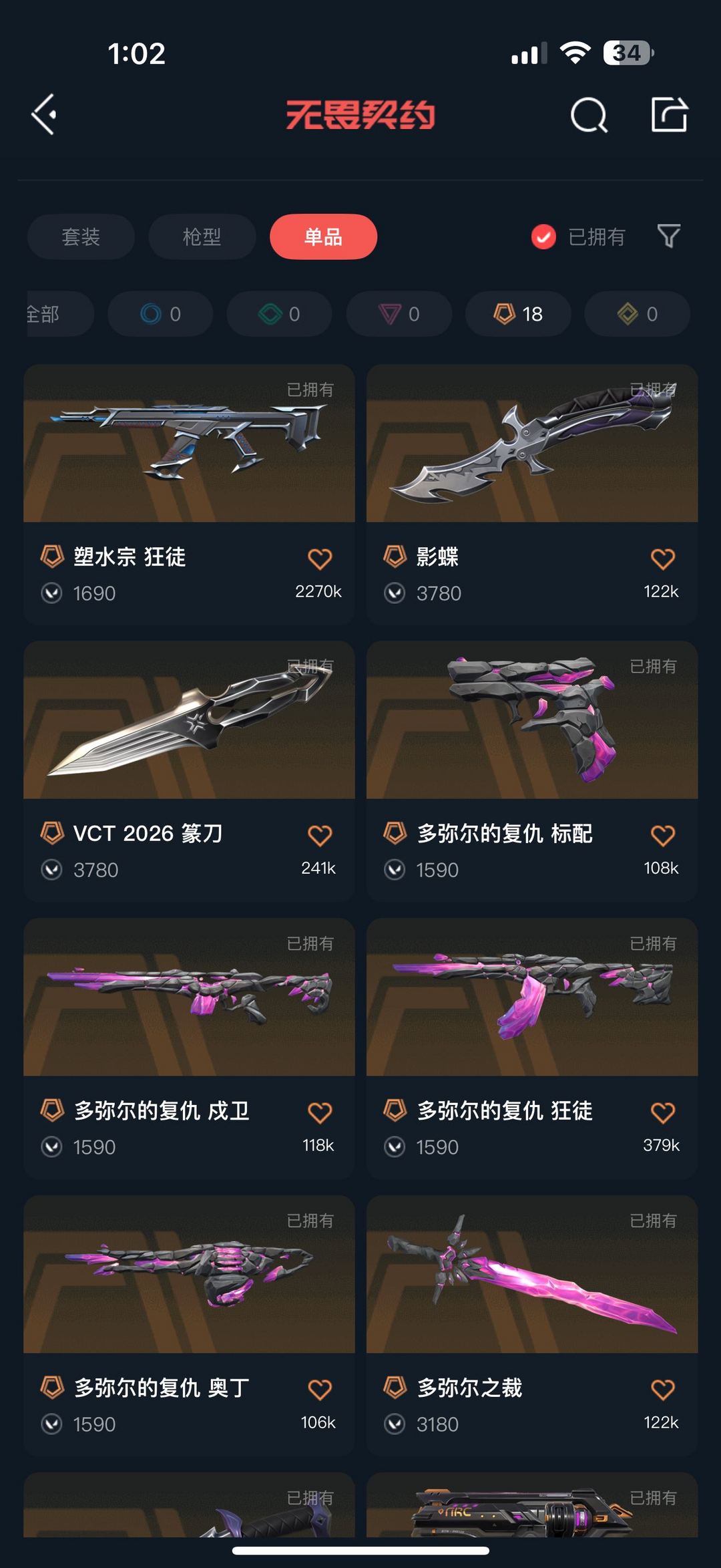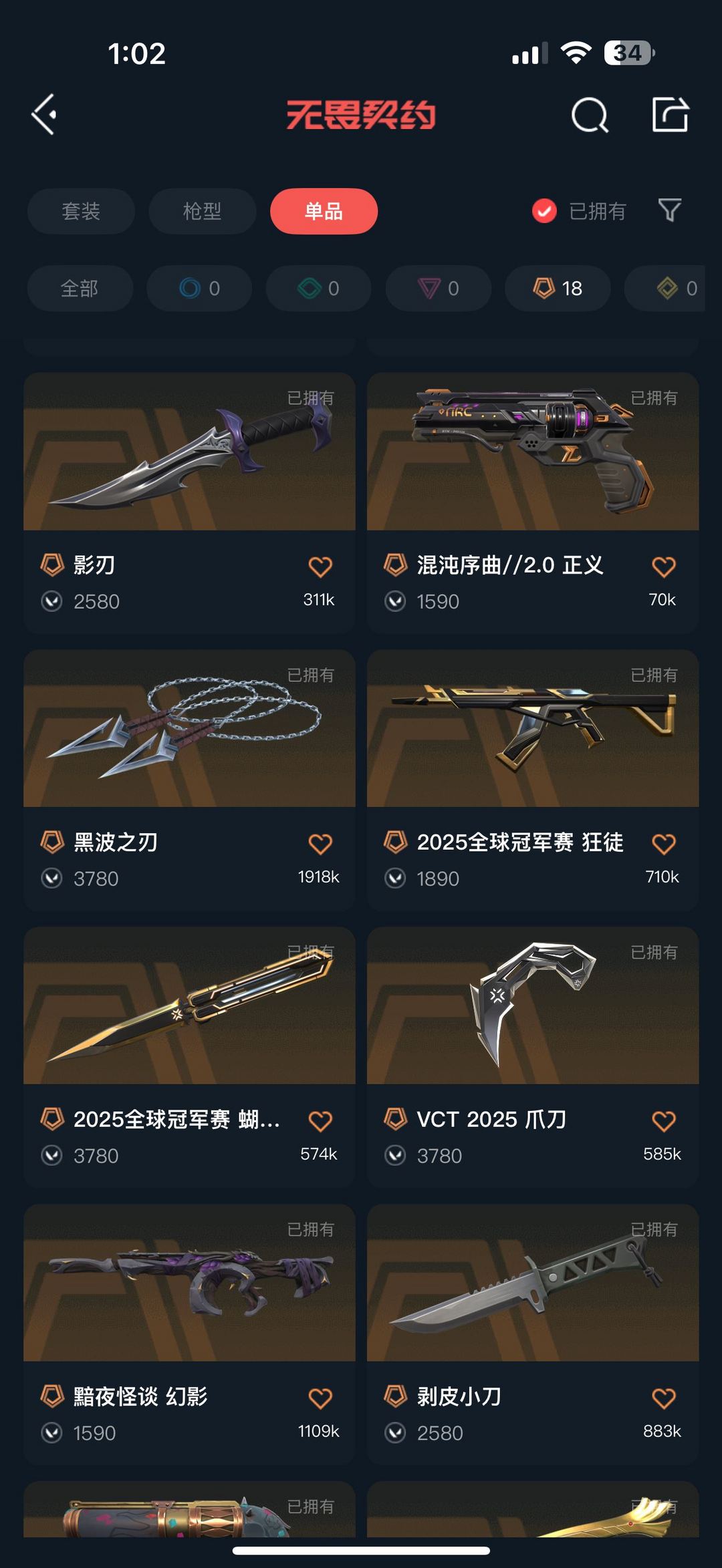 装备描述:随身武器:双城之战 正义 步枪:侦察力量 幻影 2025全球冠军赛 狂徒 多弥尔的复仇 狂徒 塑水宗 狂徒 离子狂徒 日冕雄狮狂徒 :掠影 狂徒;紫阙金琅 狂徒暗夜怪谈 幻影 近战武器:离火刃(离火刃 紫色);2025 全球冠军赛蝴蝶刀 VCT2026篆刀 多米尔之裁 黑波之刃 影蝶 影刃 堕天大狙 混沌正义 掠夺鬼魅 剥皮小刀 vct爪刀 禁止利用账号进行开挂、使用辅助违规软件诈骗等违规操作。