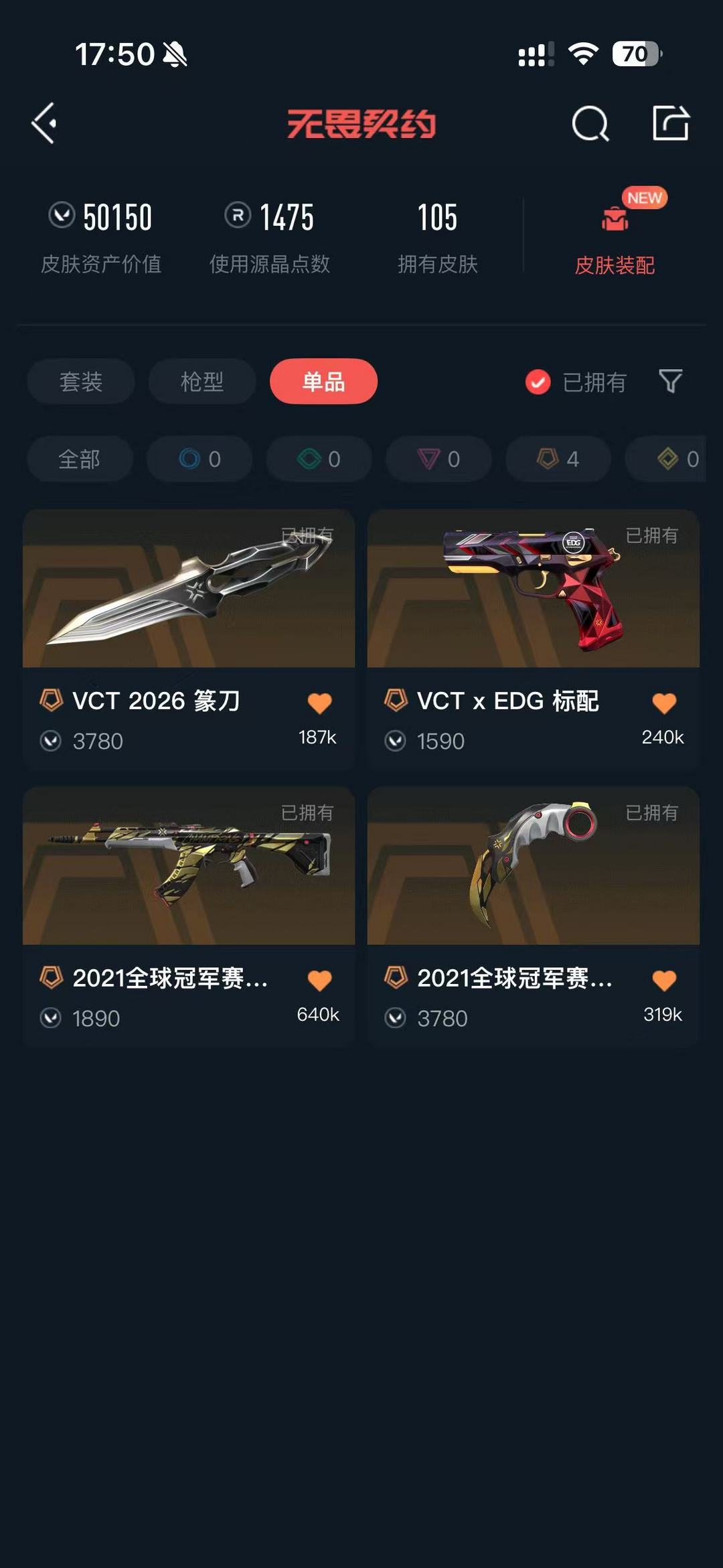 可排❤️26VCT破壳鸭❤️21冠军套限定❤️混沌掠夺盖亚鱼缸ak❤️千灵塑水宗摩托套❤️剥皮小刀
