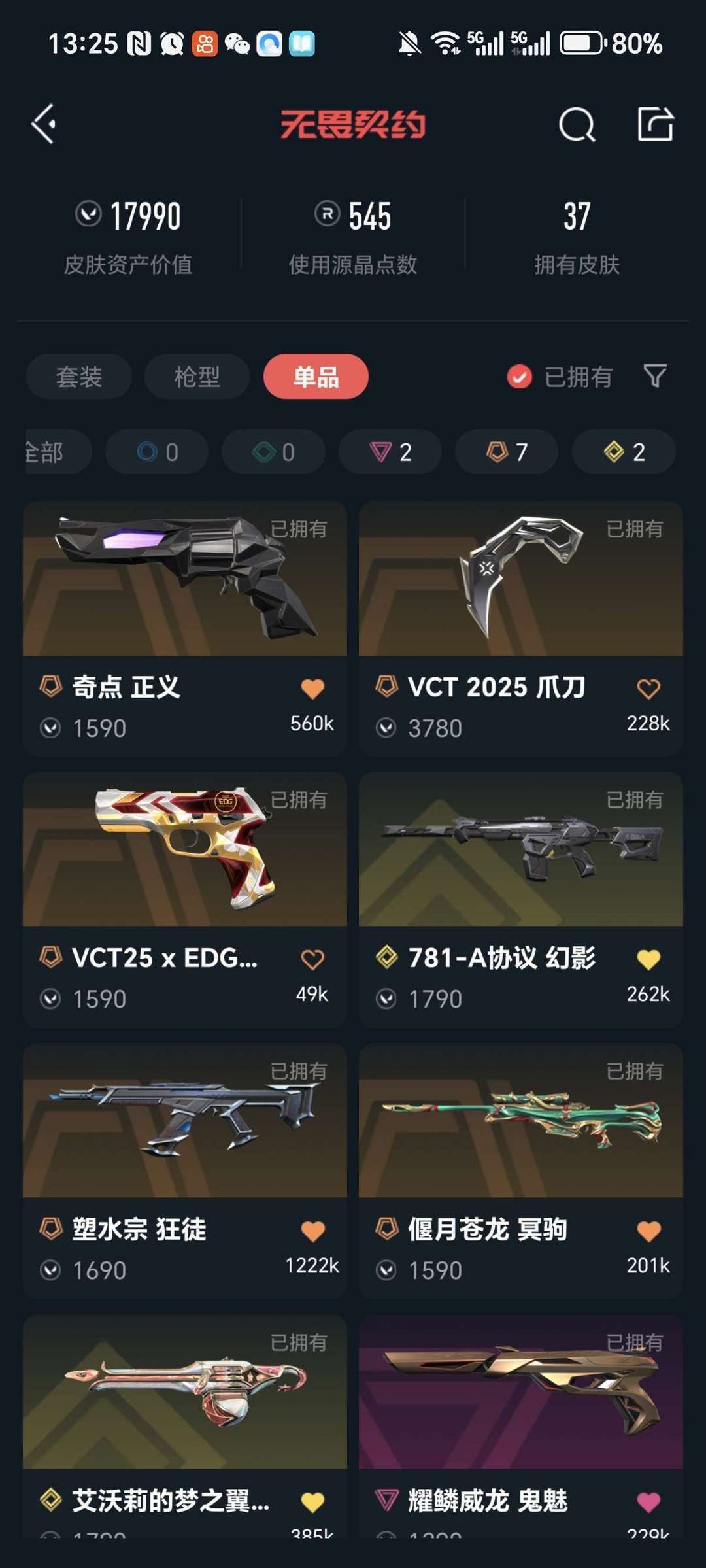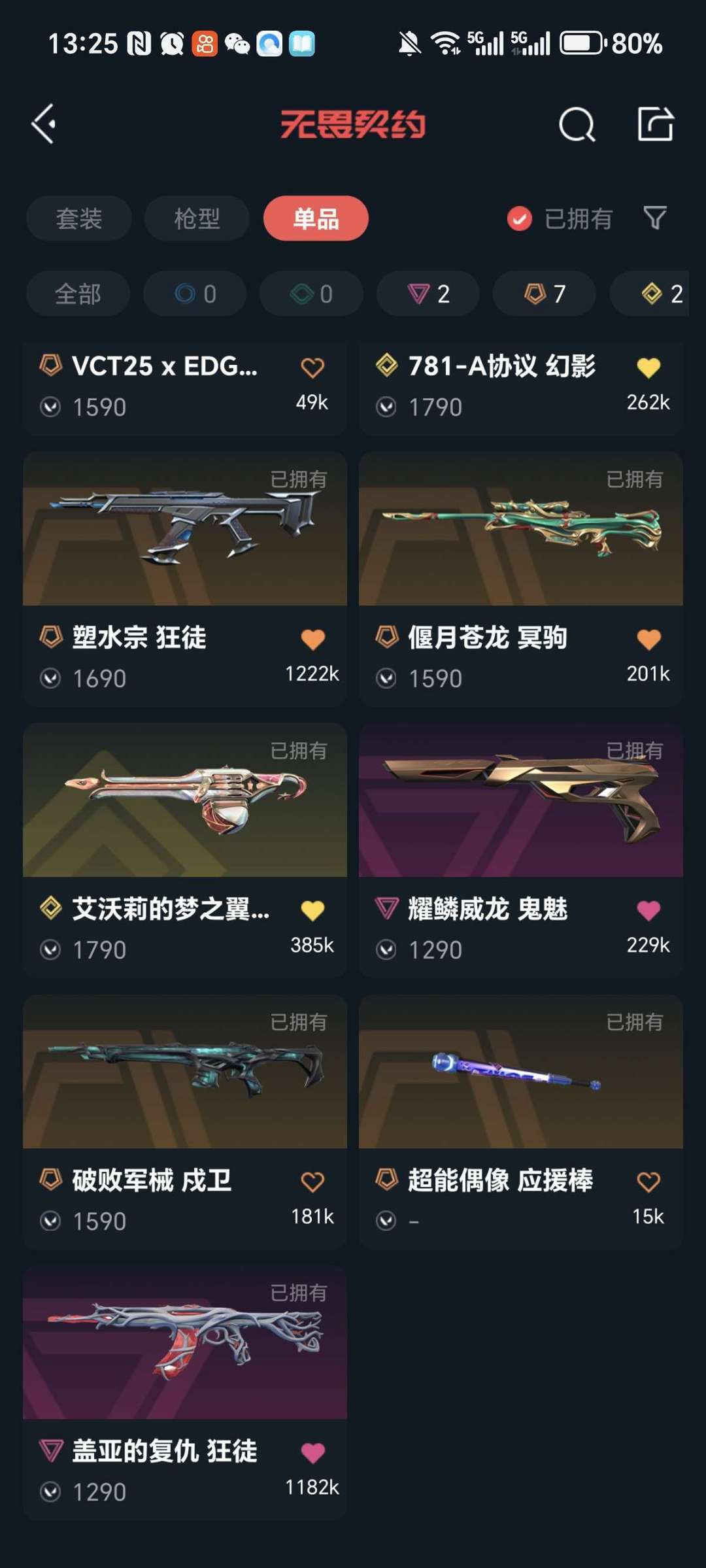 奇点正义,781幻影,艾沃莉奥丁VCT爪刀,EDG标配破败戍卫,塑水盖亚AK苍龙冥驹,威龙鬼魅
