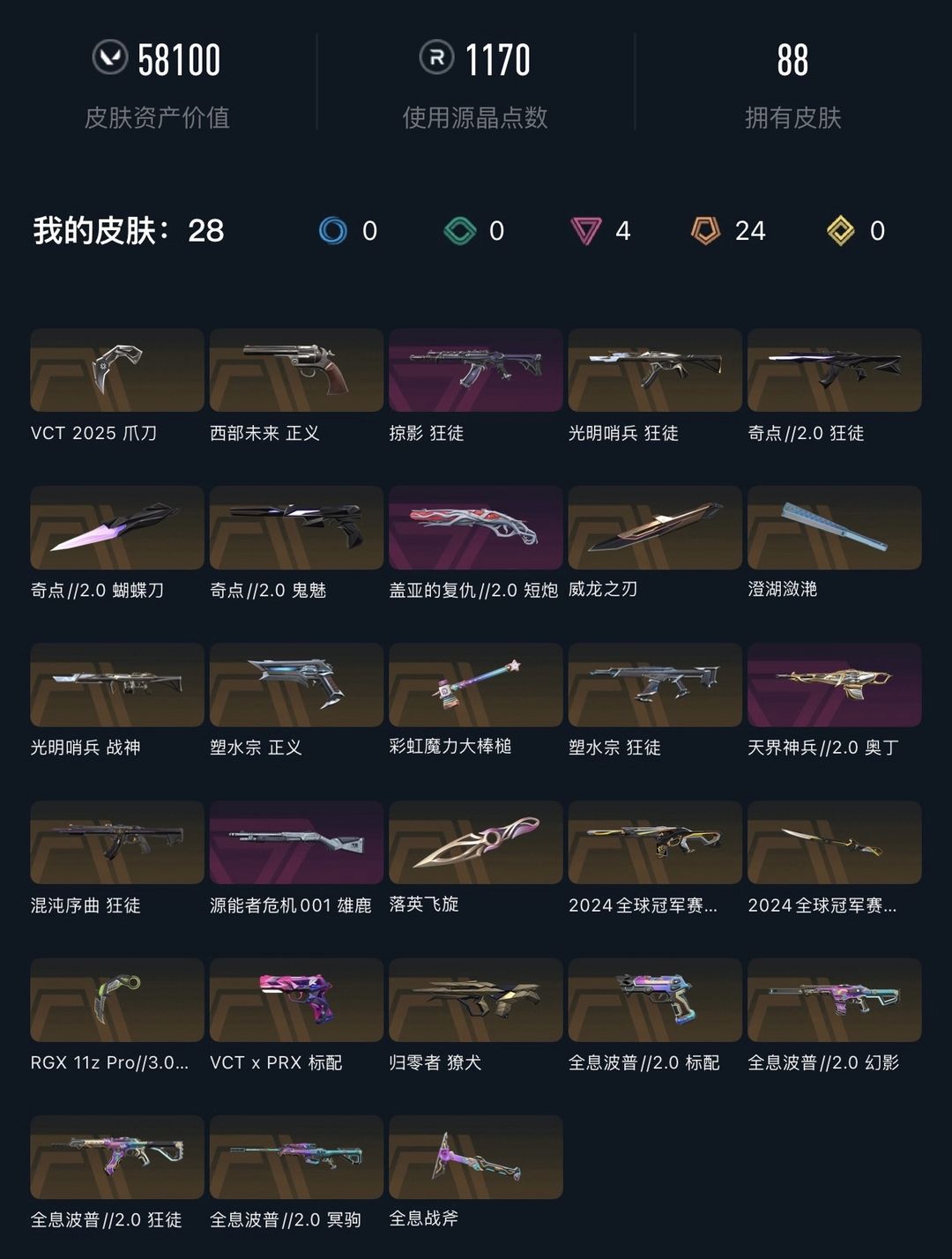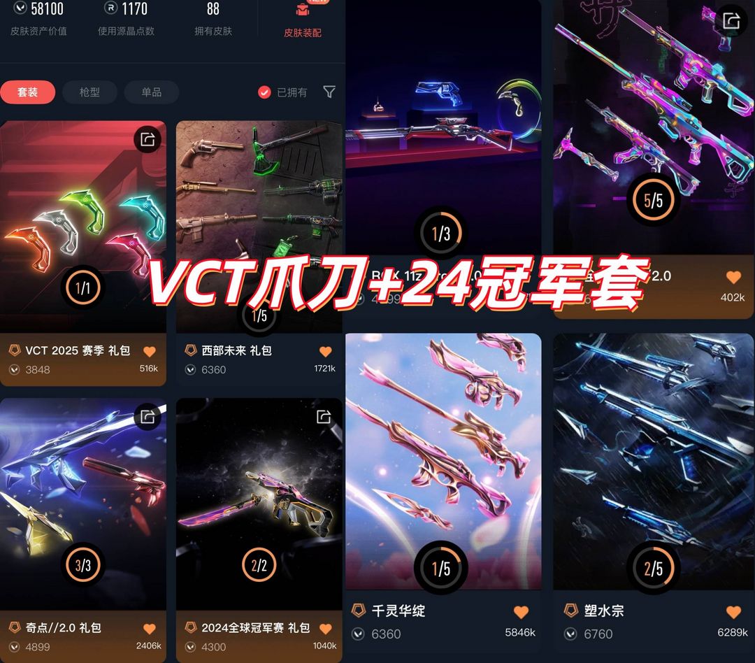 可排✅VCT爪刀⚡24冠军套⚡西部未来⚡全息2套⚡掠夺⚡显卡爪刀⚡塑水宗⚡光明⚡奇点2⚡混沌